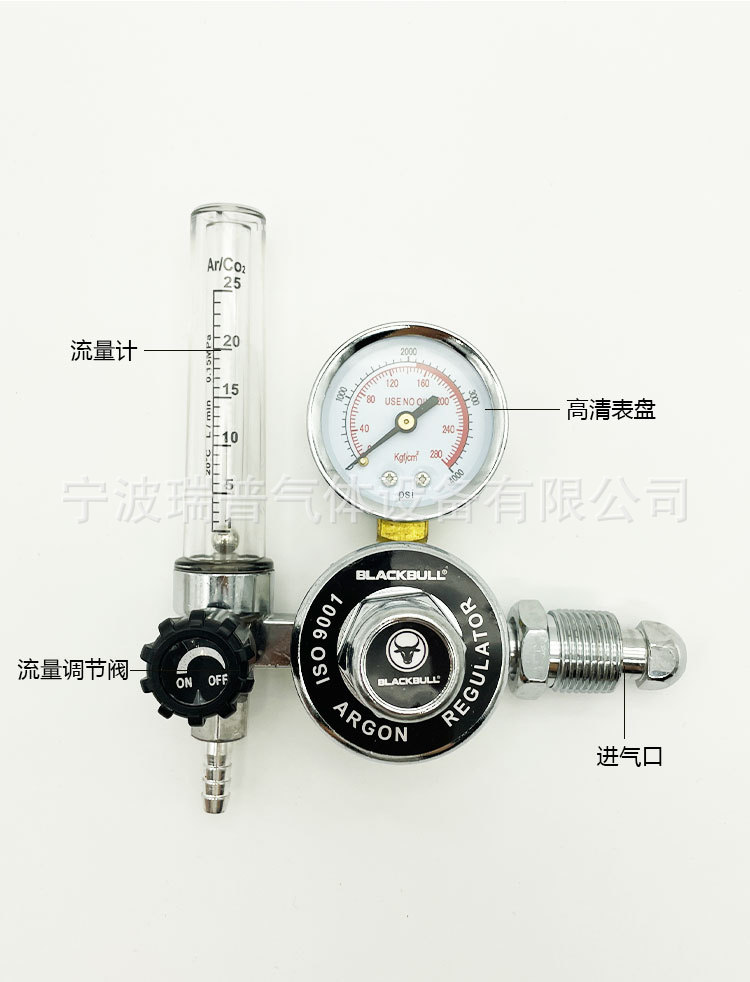 Argon Gas Pressure Regulator with Dual Flow Meters for Welding, Single Stage Pressure Reducer, 0-25 MPa