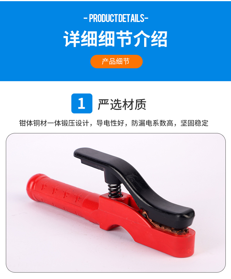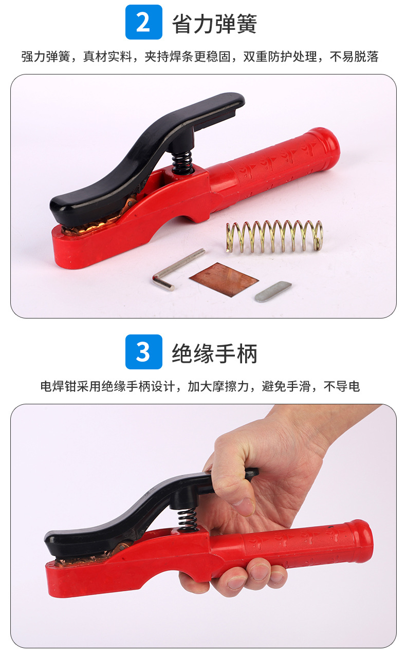 - Optimized for Various Electrodes: Capable of clamping welding rods up to 3.2mm diameter and accommodating cables from 16-50mm, ensuring adaptability across diverse welding requirements.