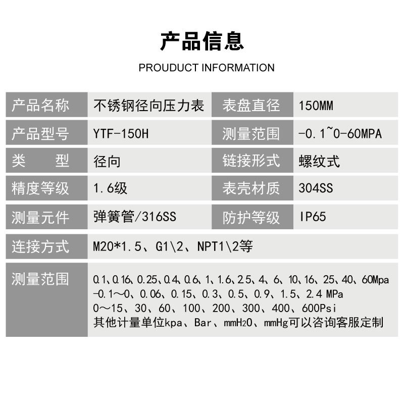 - What You Get: One YX-150H Stainless Steel Radial Pressure Gauge. Quality assurance and consistent performance for industrial and commercial use.