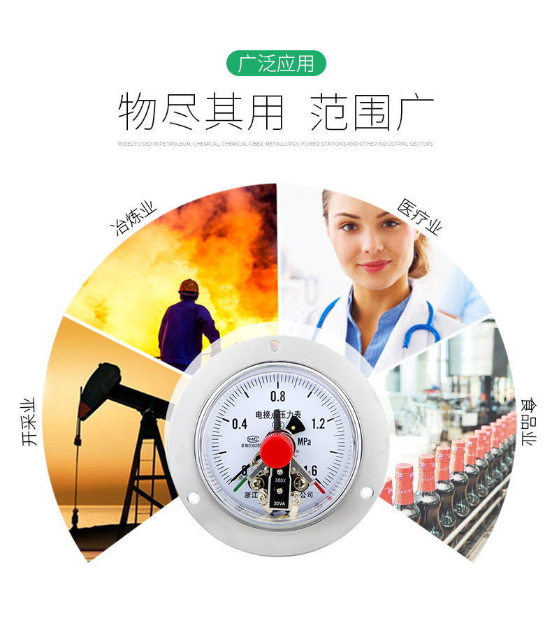 - Wide Compatibility: YXC100ZT electric contact pressure gauge for various industrial pressure measurement applications, designed for reliable operation.