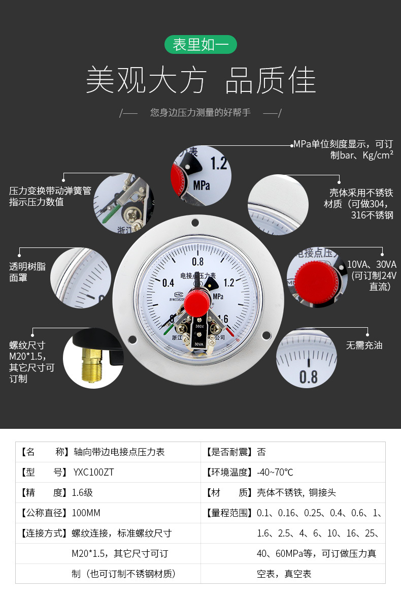- What You Get: One YXC100ZT axial electric contact pressure gauge, providing essential pressure monitoring capabilities for your equipment.