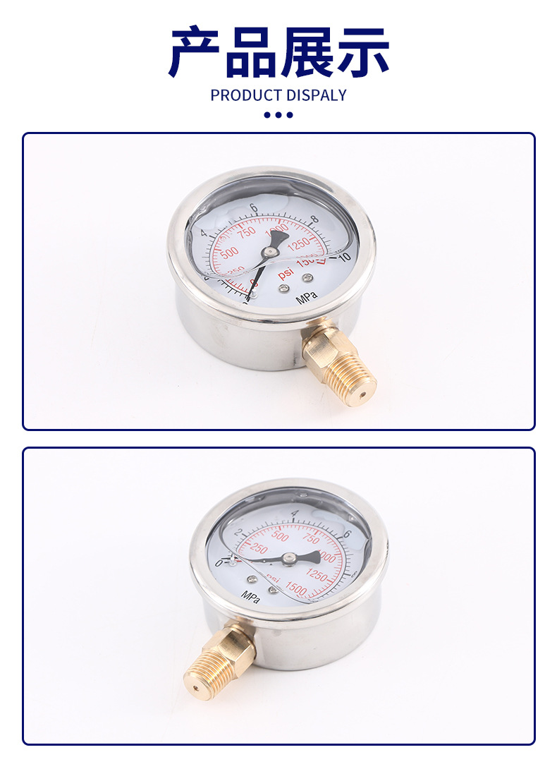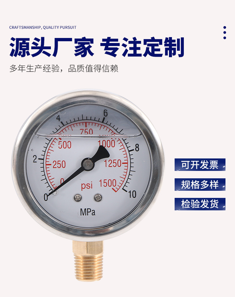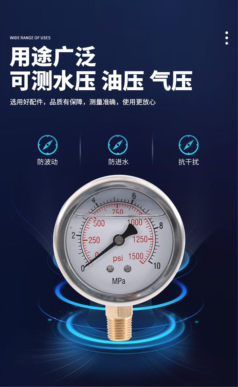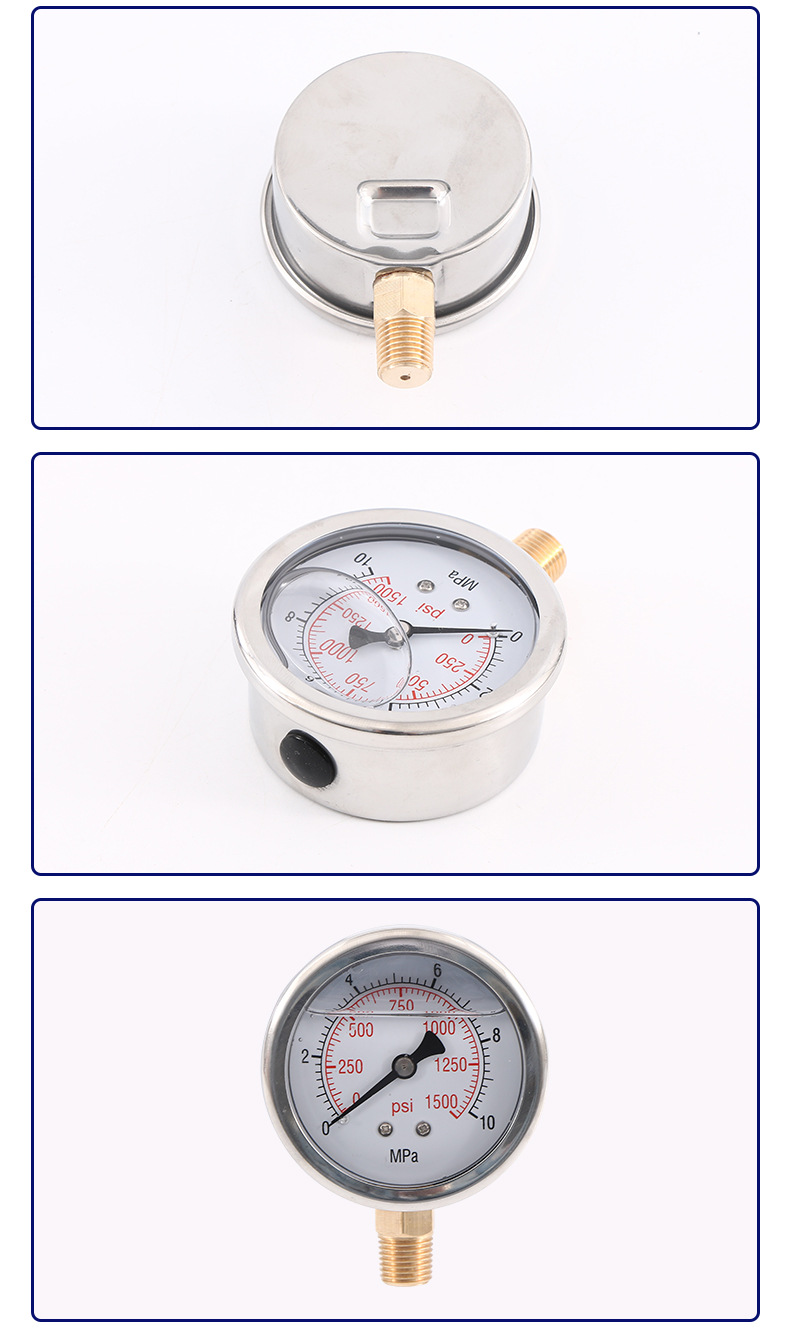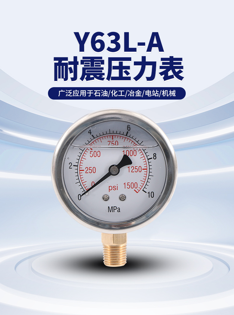 - Wide Compatibility: Y63L-A shock-resistant pressure gauge suitable for various water, oil, and air pressure measurement applications. Ideal for demanding industrial environments.