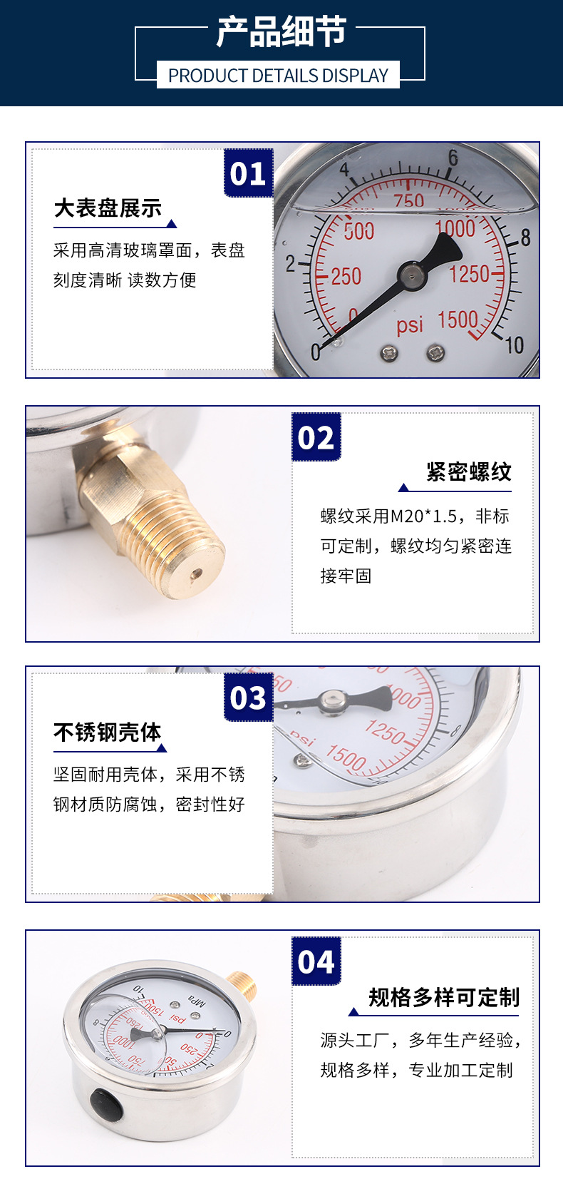 - Accurate & Clear Reading: Dual scale display (0-10MPa and 0-1500psi) ensures precise pressure readings. Large, easy-to-read dial provides optimal visibility in diverse conditions.