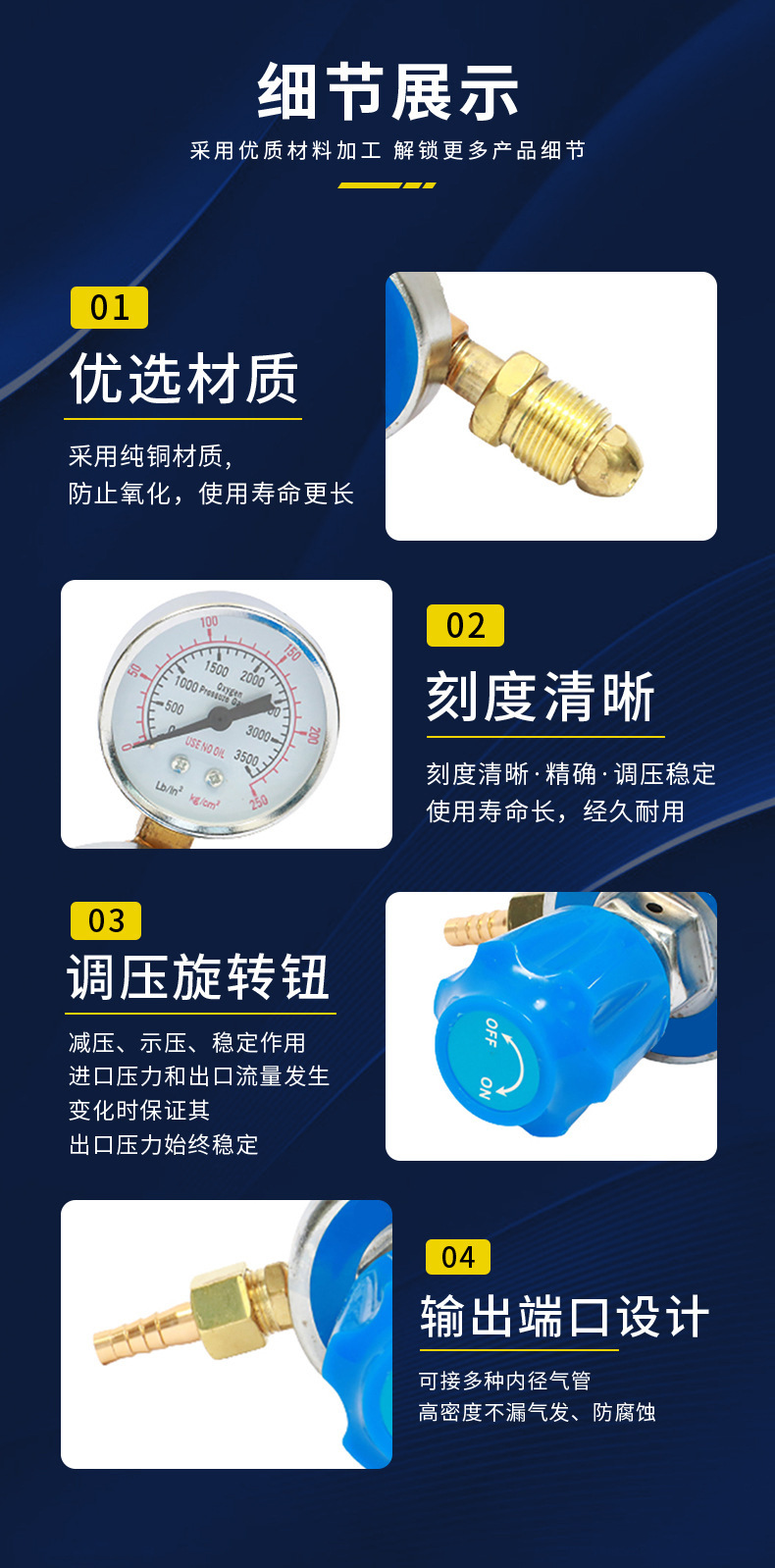 - Versatile Application: Ideal for various industrial uses requiring reduced high-pressure gas to low-pressure gas, maintaining stable pressure and flow rates.