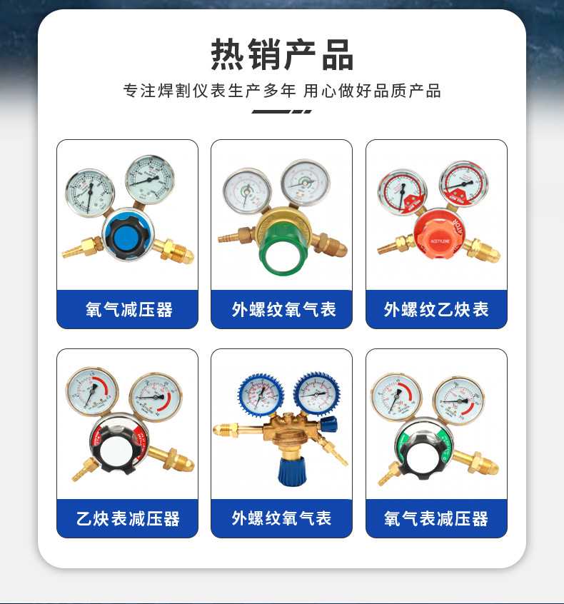 Hongqi YY-60 Acetylene Pressure Gauge, M14*1.5 Connection, 2.5 MPa Precision, 60MM Diameter