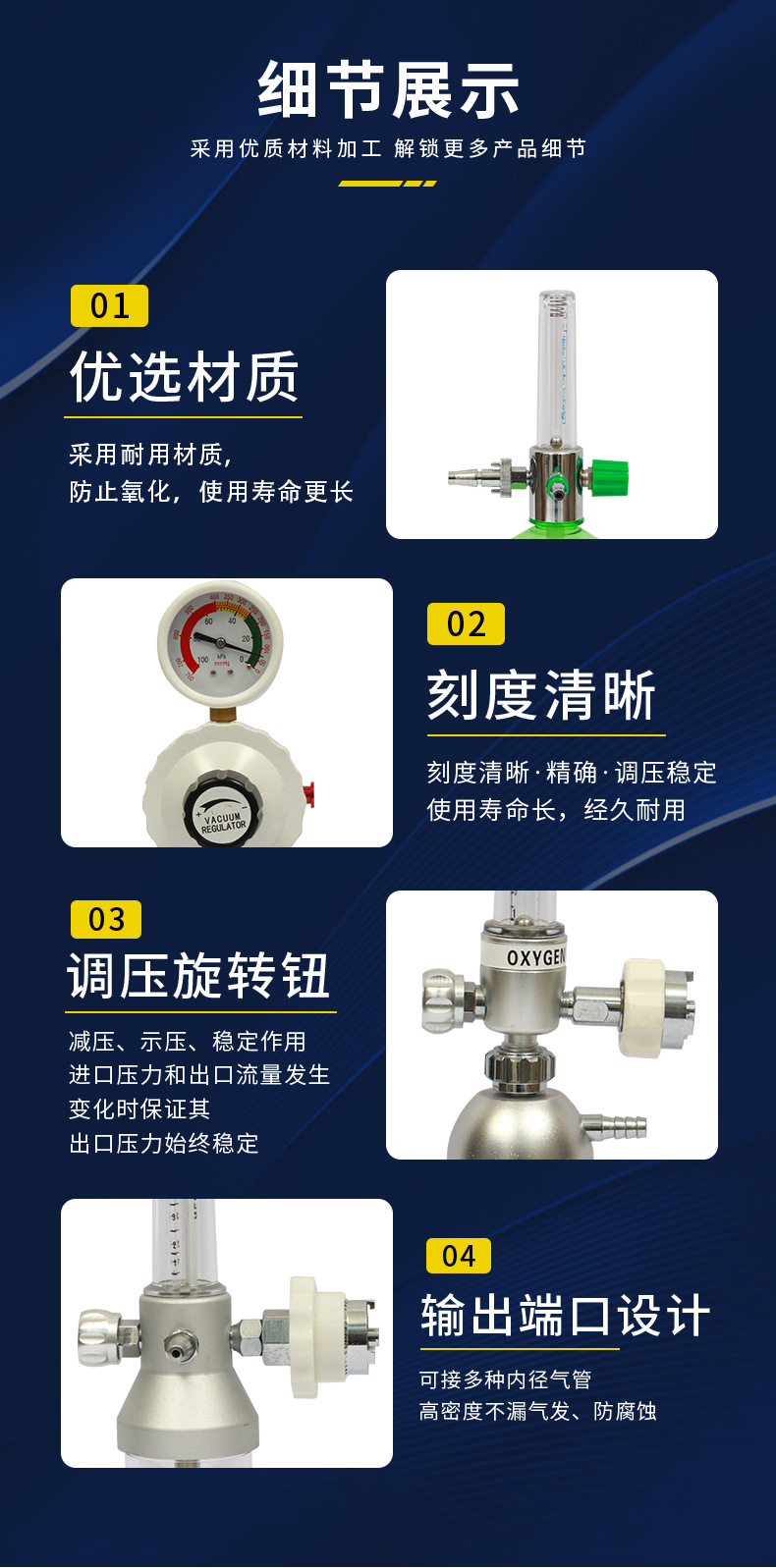 - Precise Pressure Regulation: Features a clear pressure gauge (0-0.3MPa) ensuring accurate and stable oxygen output for safe medical applications.