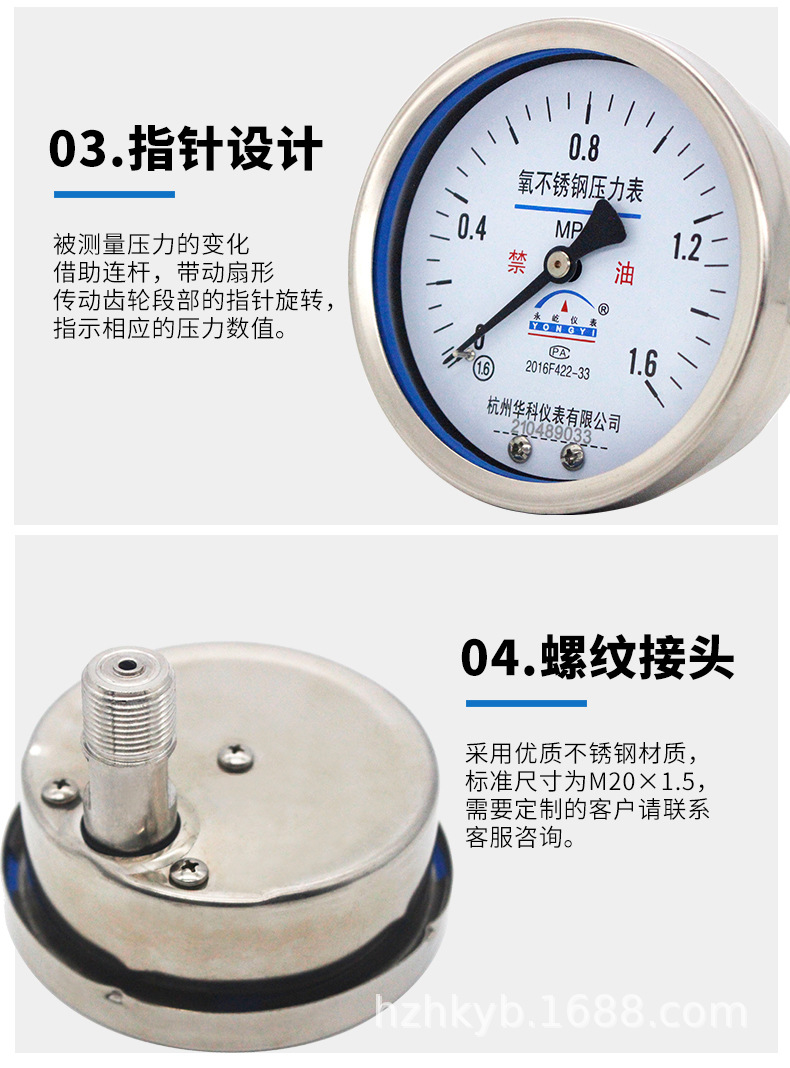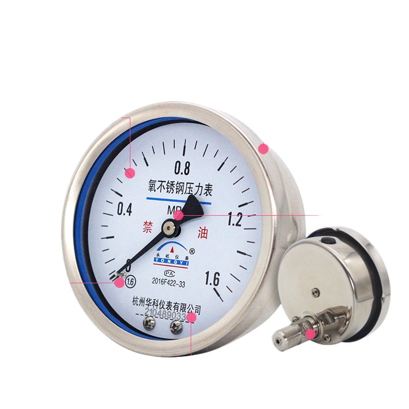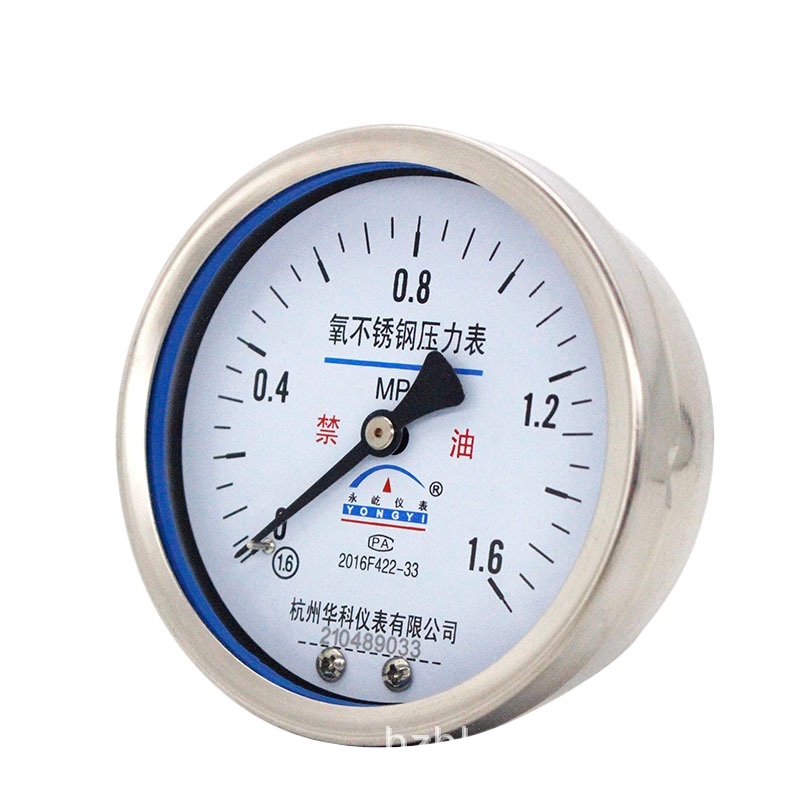 - Wide Compatibility: Designed as an axial type oxygen stainless steel pressure gauge (Model YO100ZBF), compatible with water pressure, hydraulic pressure, oil pressure, and general gas pressure systems.