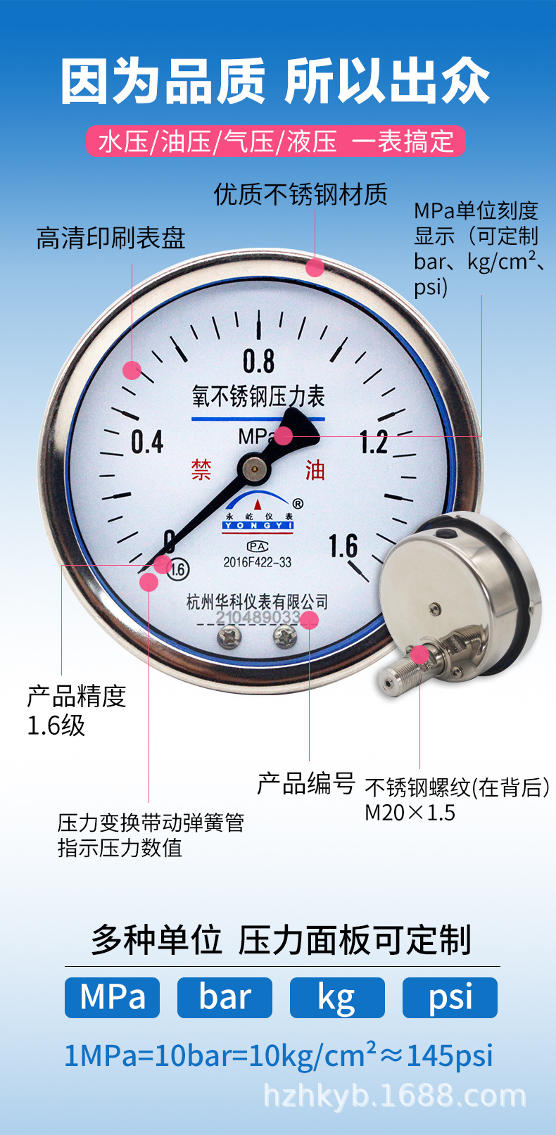 - Key Specs & Performance: Features a measurement range of 0-1.6 MPa with a high accuracy rating of 1.6, providing precise and reliable pressure readings for critical applications.
