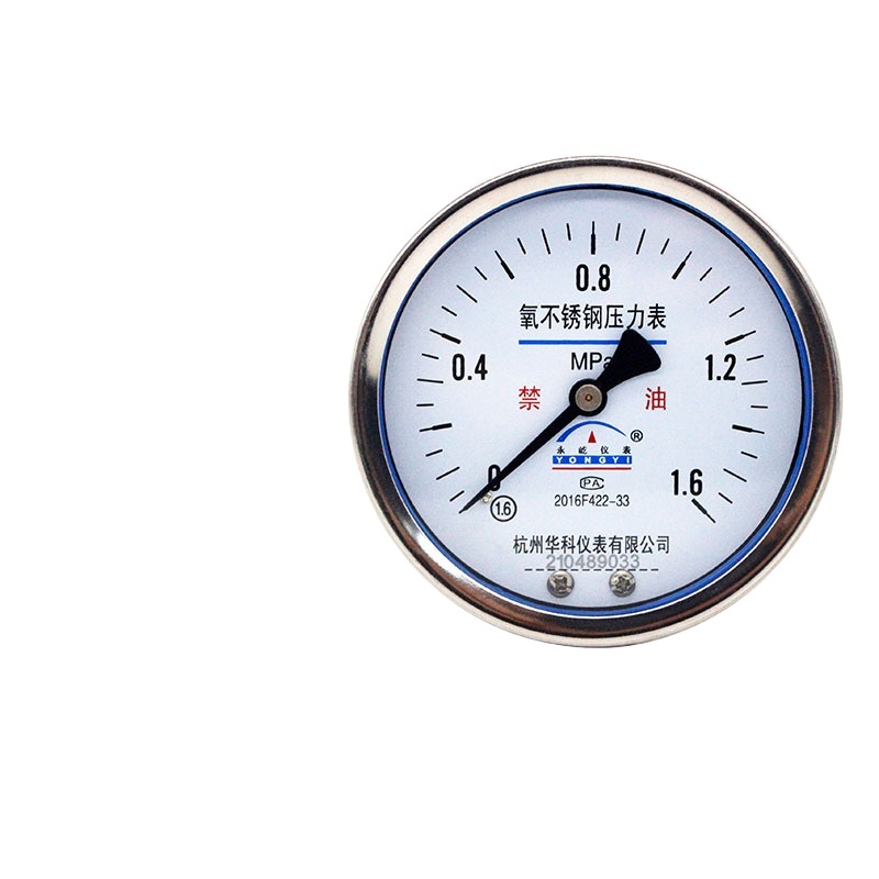 Yongyi Axial Type Oxygen Stainless Steel Pressure Gauge YO100ZBF (0-1.6 MPa, 1.6 Accuracy) for Water, Hydraulic, Oil, Gas Systems
