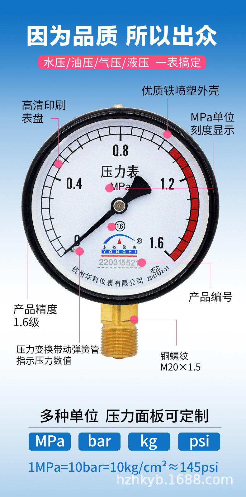 - What You Get: One Yongyi Y100 Radial Pressure Gauge (0-1.6MPa), ensuring an accurate and dependable solution for your pressure measurement needs. Factory direct for assured quality.