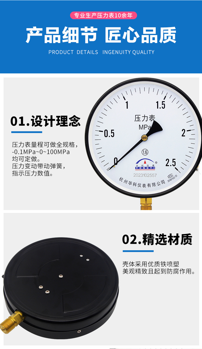 - Key Specs & Performance: Offers a precise measurement range (e.g., 0-2.5 MPa as shown in image, with various other ranges available) and a high accuracy rating of 1.6, providing reliable and precise readings for critical monitoring.