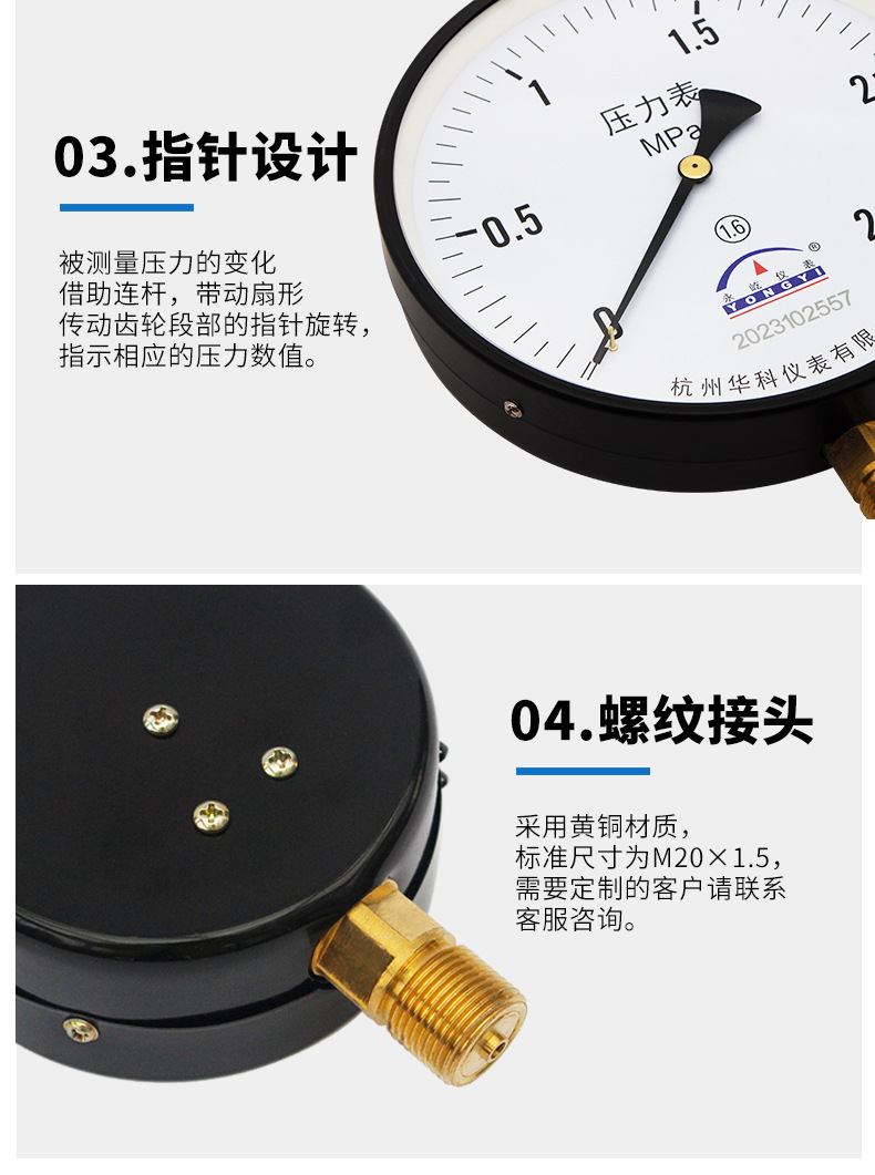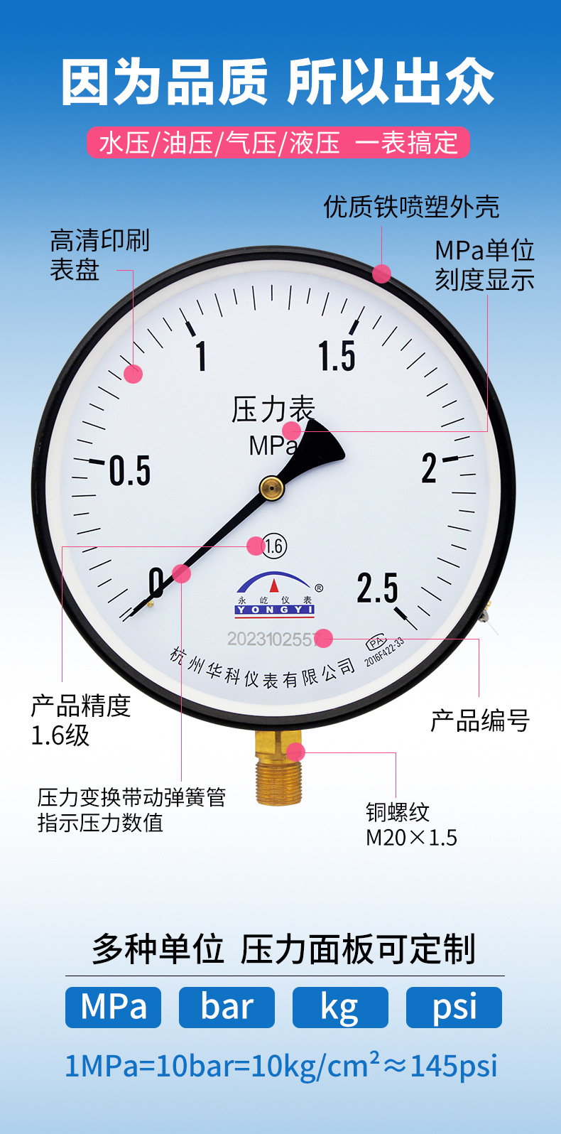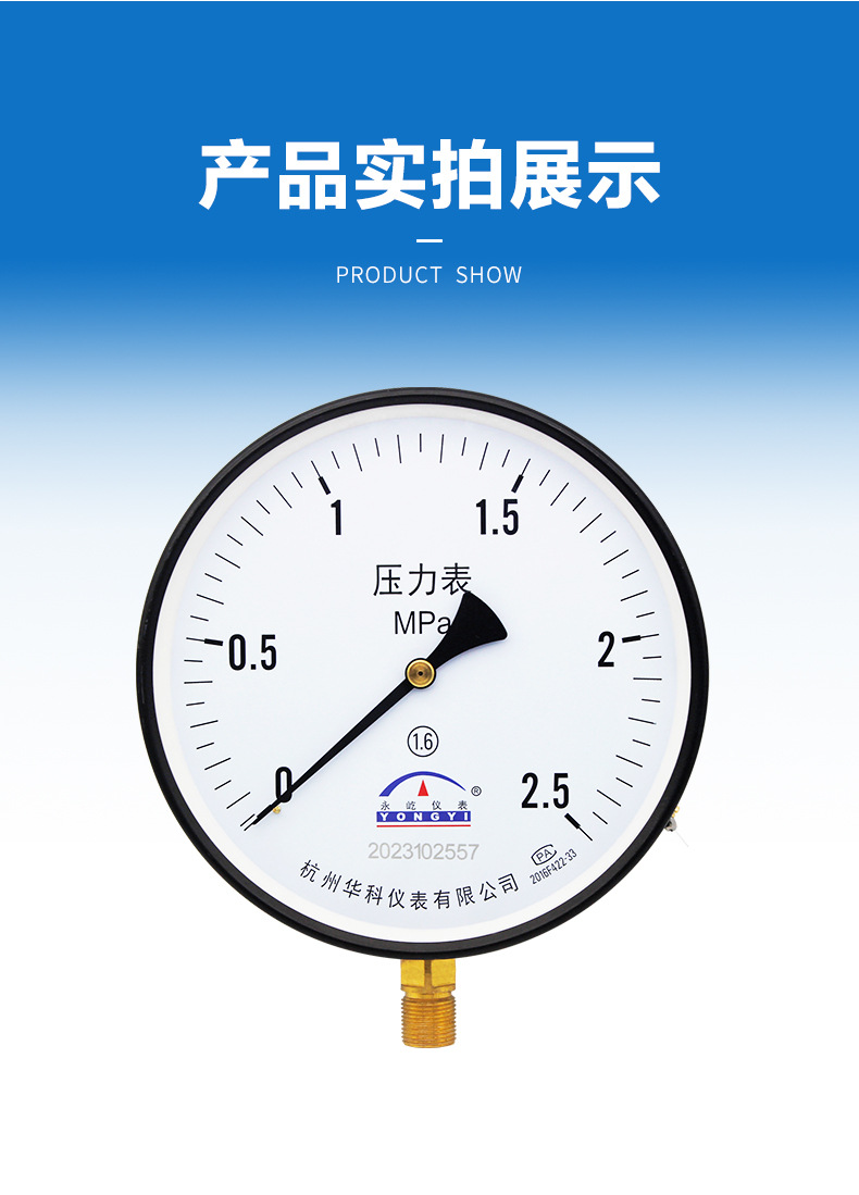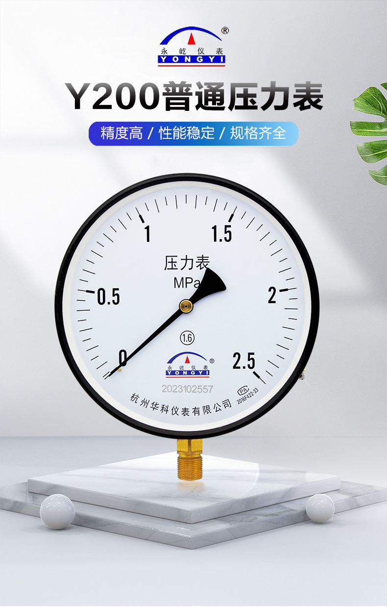 Yongyi Y200 Radial Pressure Gauge (0-2.5 MPa, 1.6 Accuracy) for Water, Liquid, Oil, Gas Systems, Replaces Standard Pressure Gauges