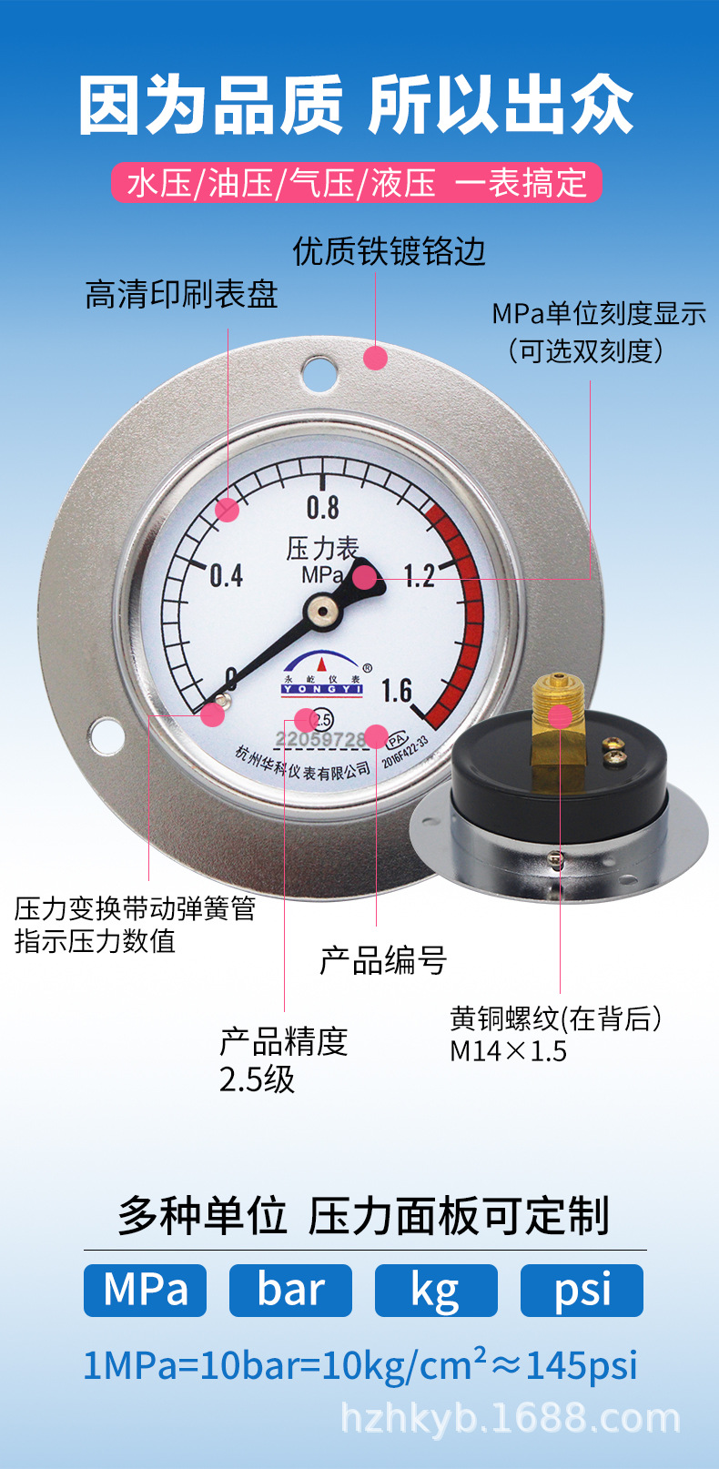 - Key Specs & Performance: Features a precise 0-1.6MPa measurement range with a 2.5 accuracy grade, providing accurate readings for critical monitoring.