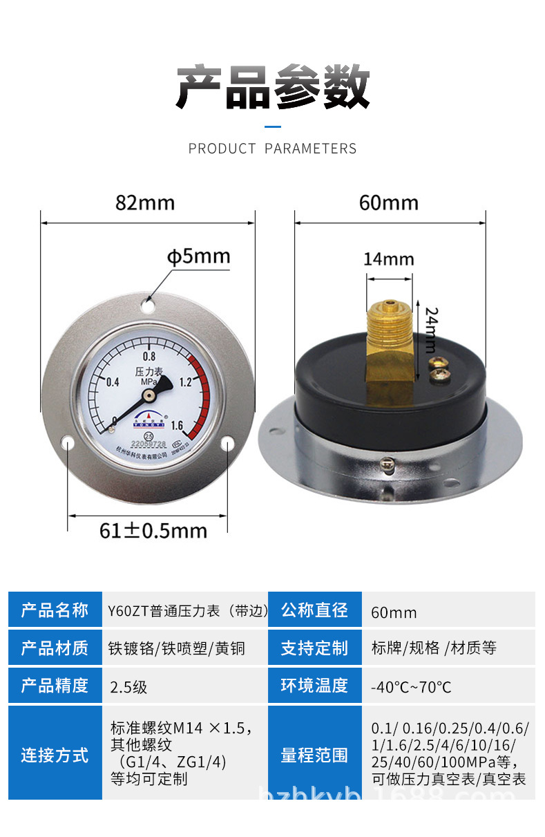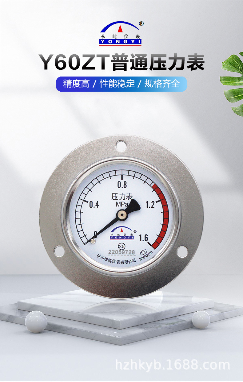 - Wide Compatibility: Yongyi Y60ZT axial edge pressure gauge for versatile applications including water, oil, and gas hydraulic systems.