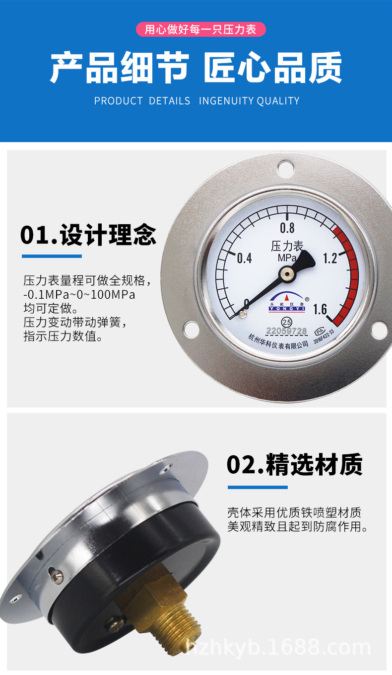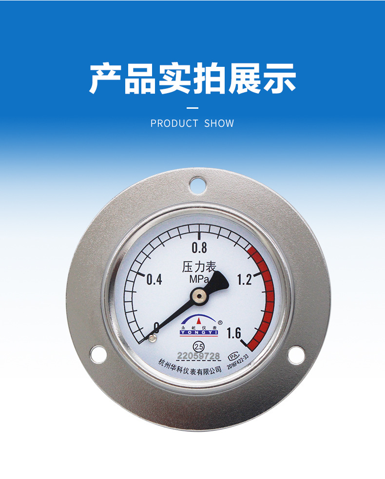 Yongyi Y60ZT Axial Edge Pressure Gauge 0-1.6MPa Water Oil Gas Hydraulic Pressure Tester