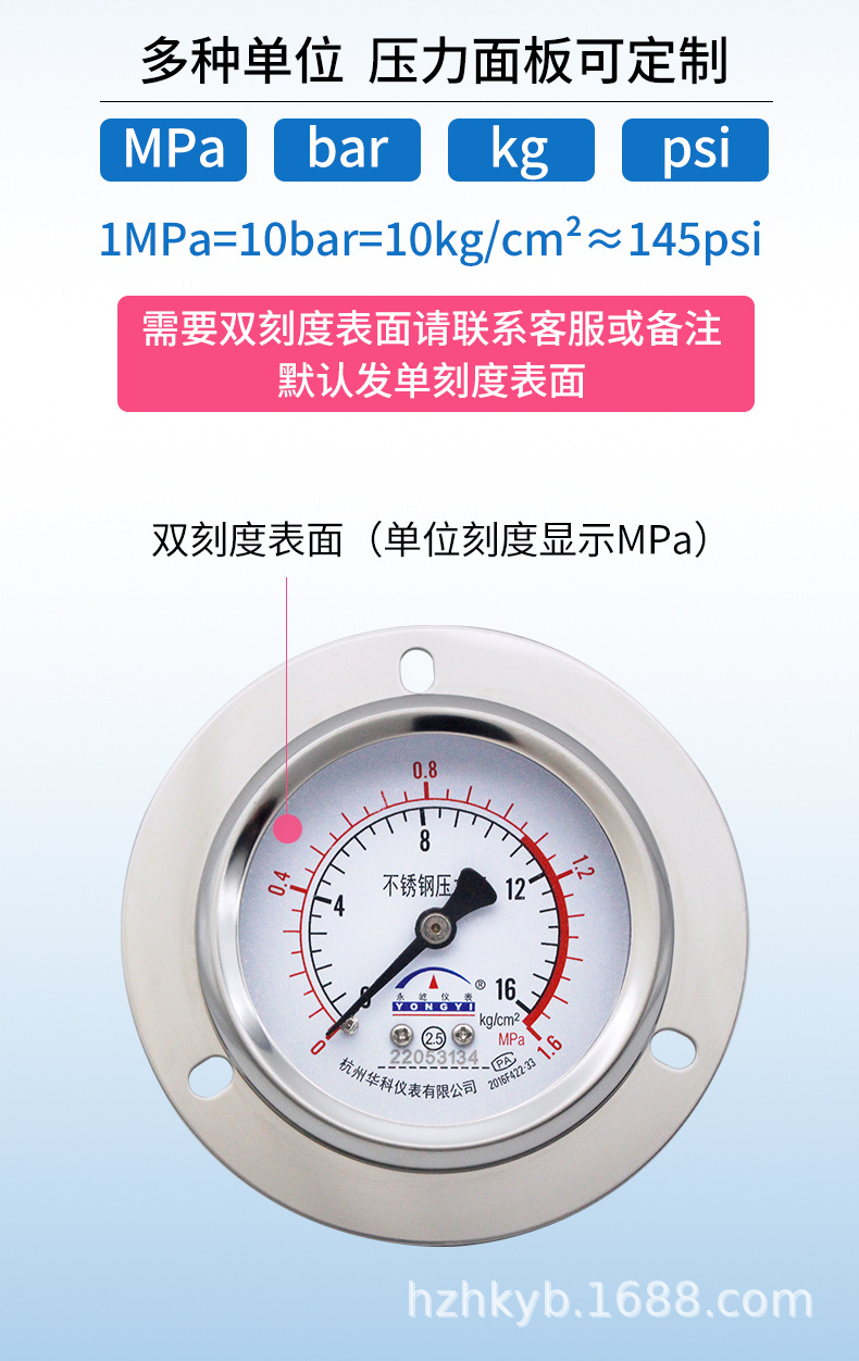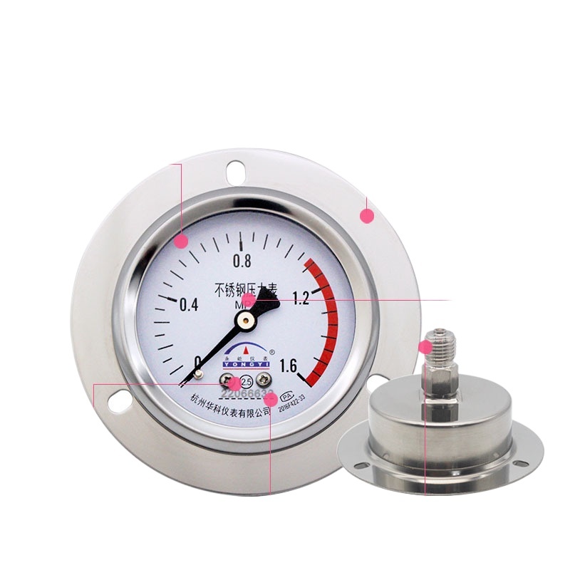 Yongyi Y60ZTBF Axial Edge Stainless Steel Pressure Gauge (0-1.6MPa) for Water, Oil, Gas Pressure Systems