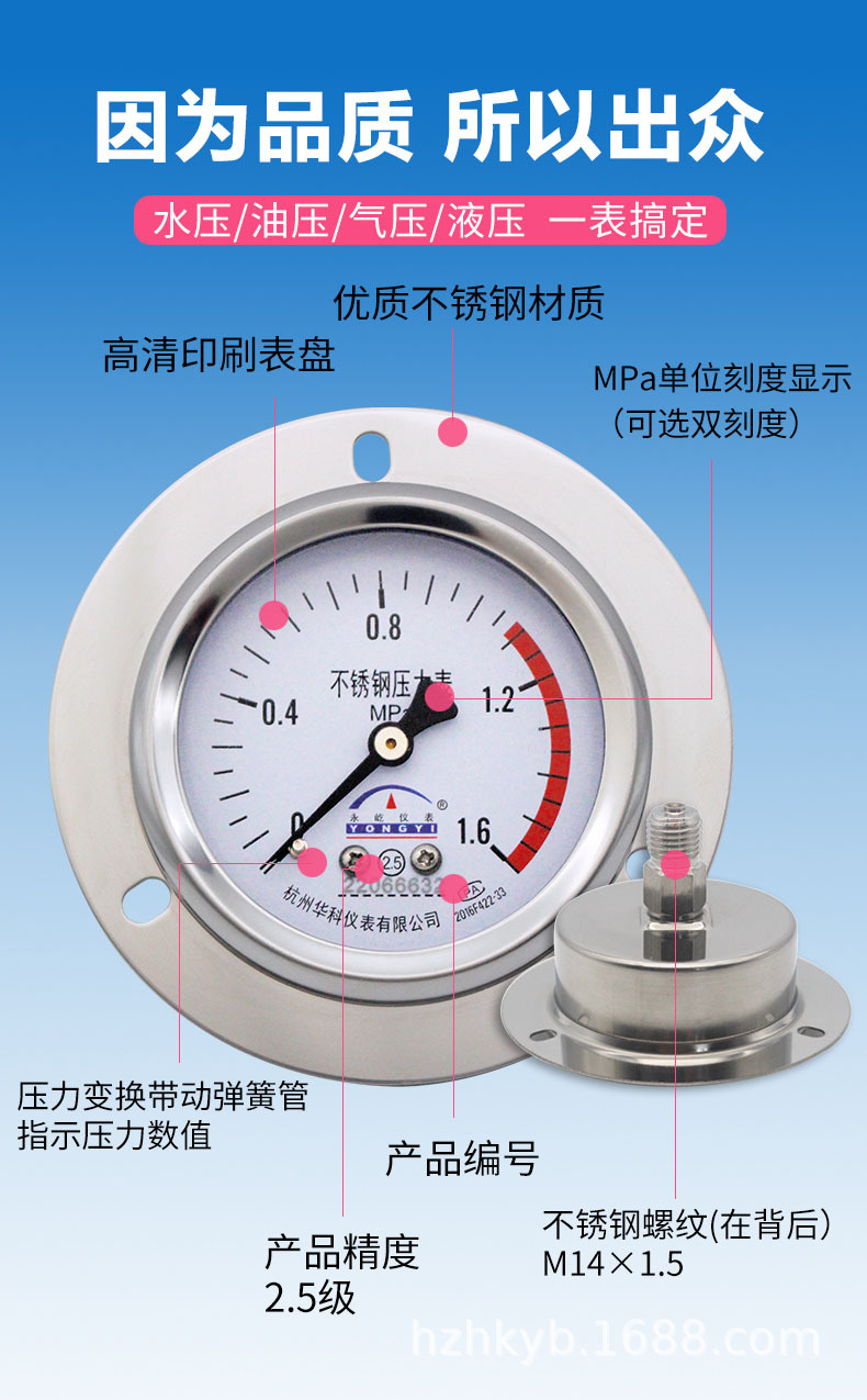 - What You Get: Includes one YONGYI Y60ZTBF Stainless Steel Pressure Gauge, factory-direct quality assurance, and comprehensive specifications to meet various industrial needs.