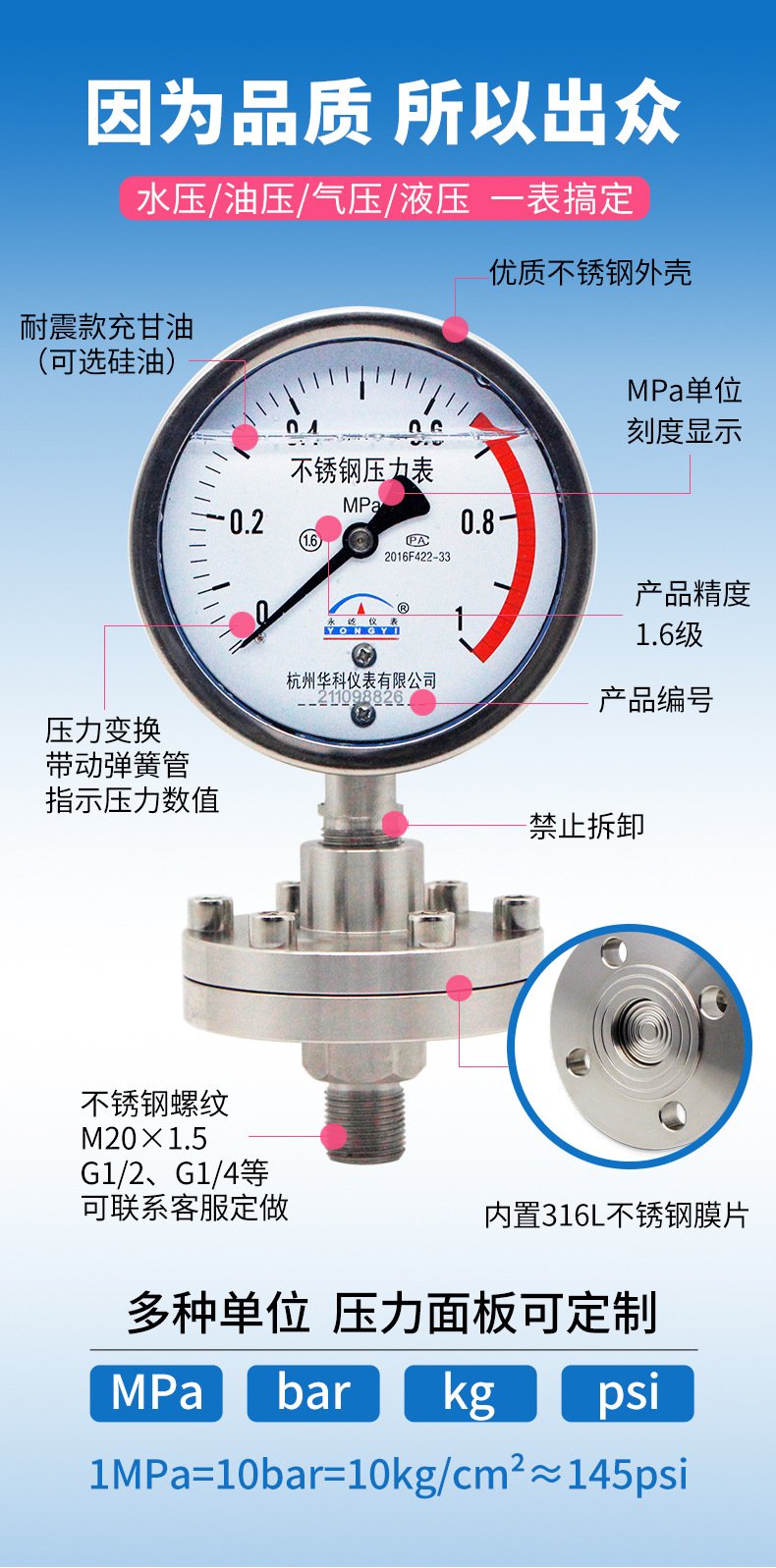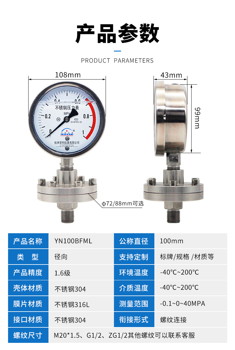 - What You Get: One Yongyi YN100BFML Stainless Steel Diaphragm Pressure Gauge, built for durability and high performance in demanding industrial environments.