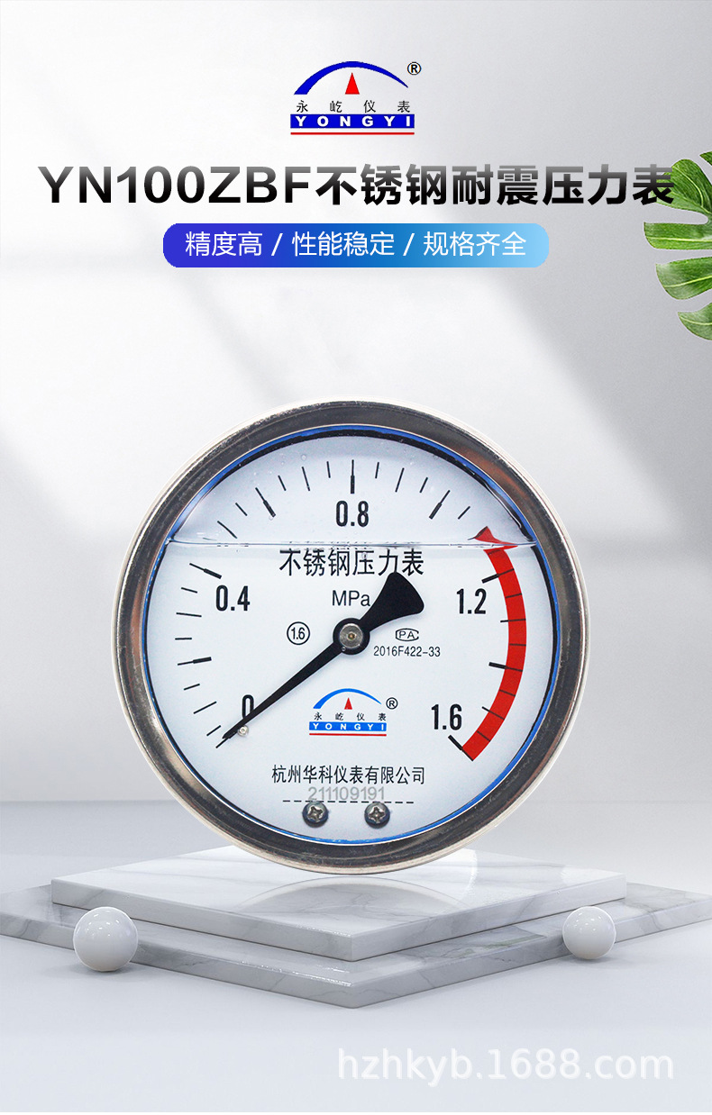 Yongyi YN100ZBF Stainless Steel Axial Pressure Gauge (0-1.6MPa) for HVAC Water, Hydraulic, Oil, Gas Systems Replaces No. 211109191