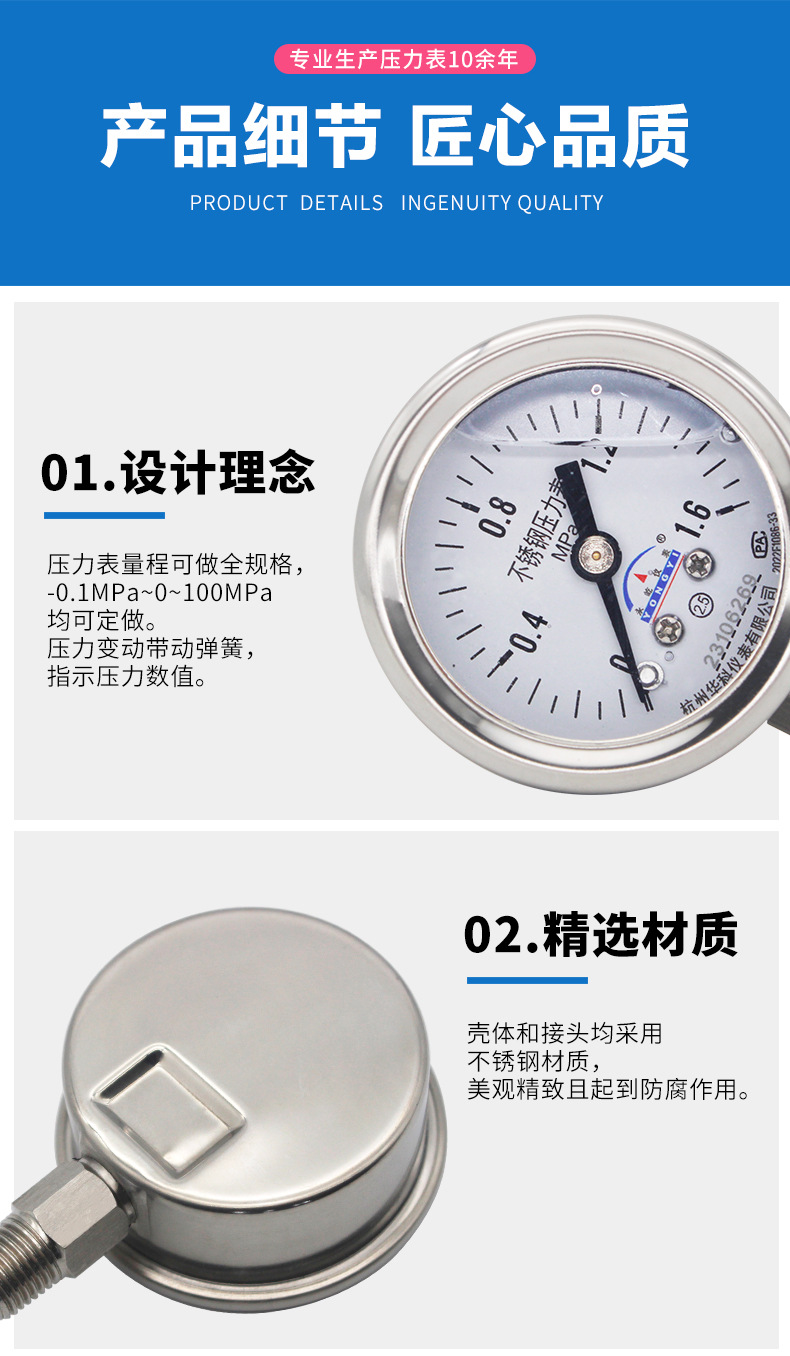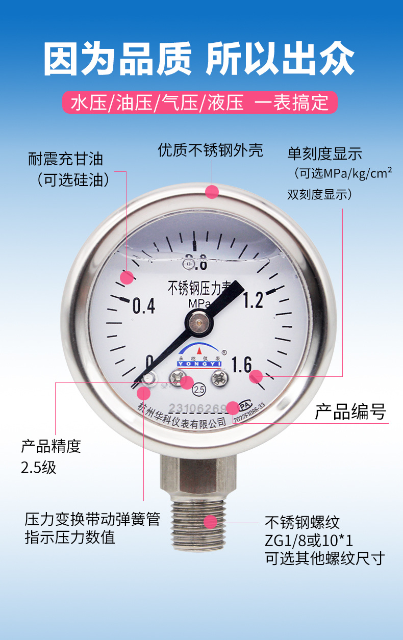 - Key Specs & Performance: Featuring a 40mm nominal diameter and 2.5 accuracy class, it offers precise pressure measurement with a range of 0~1.6 MPa, ideal for various industrial and residential applications.