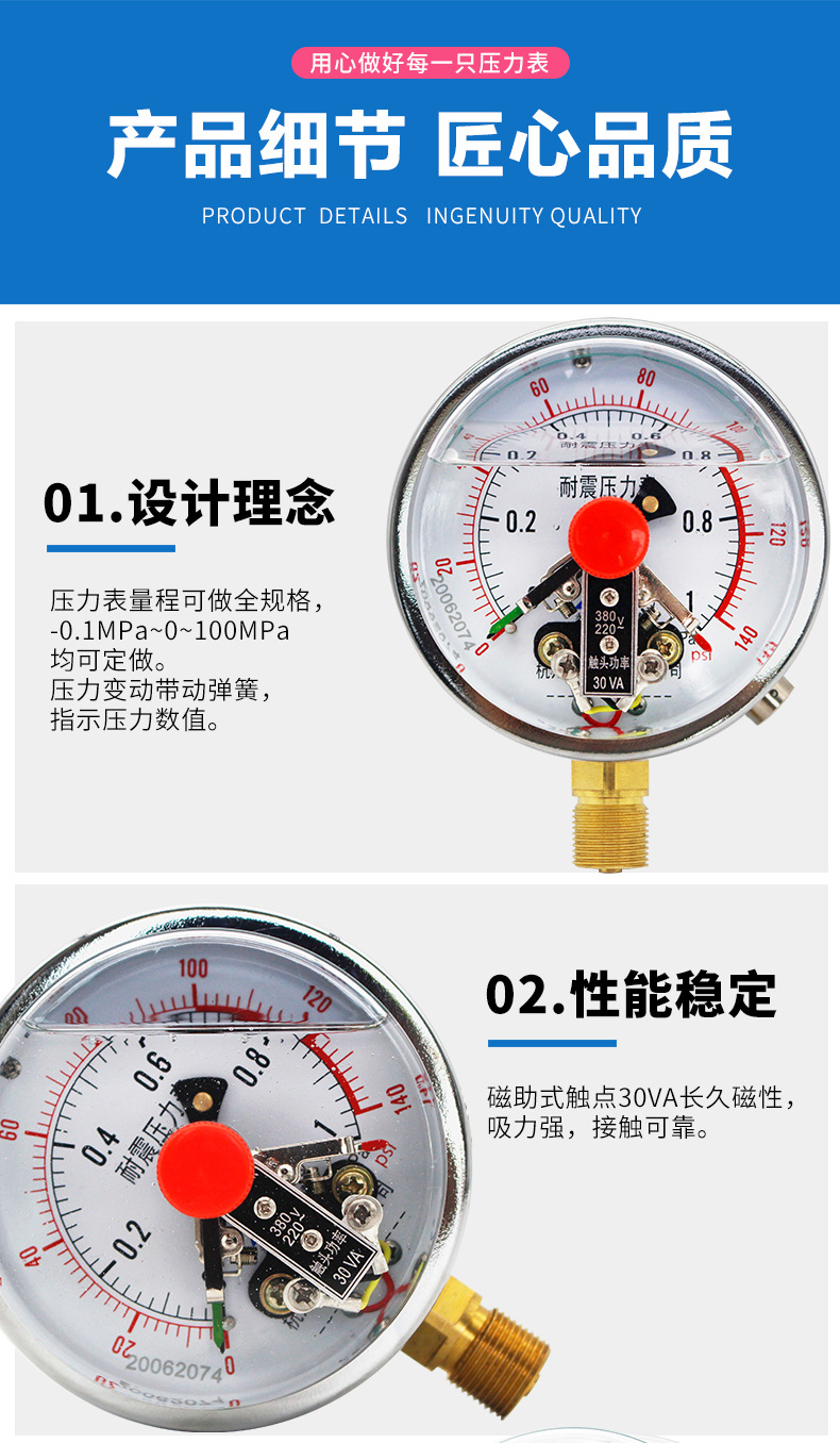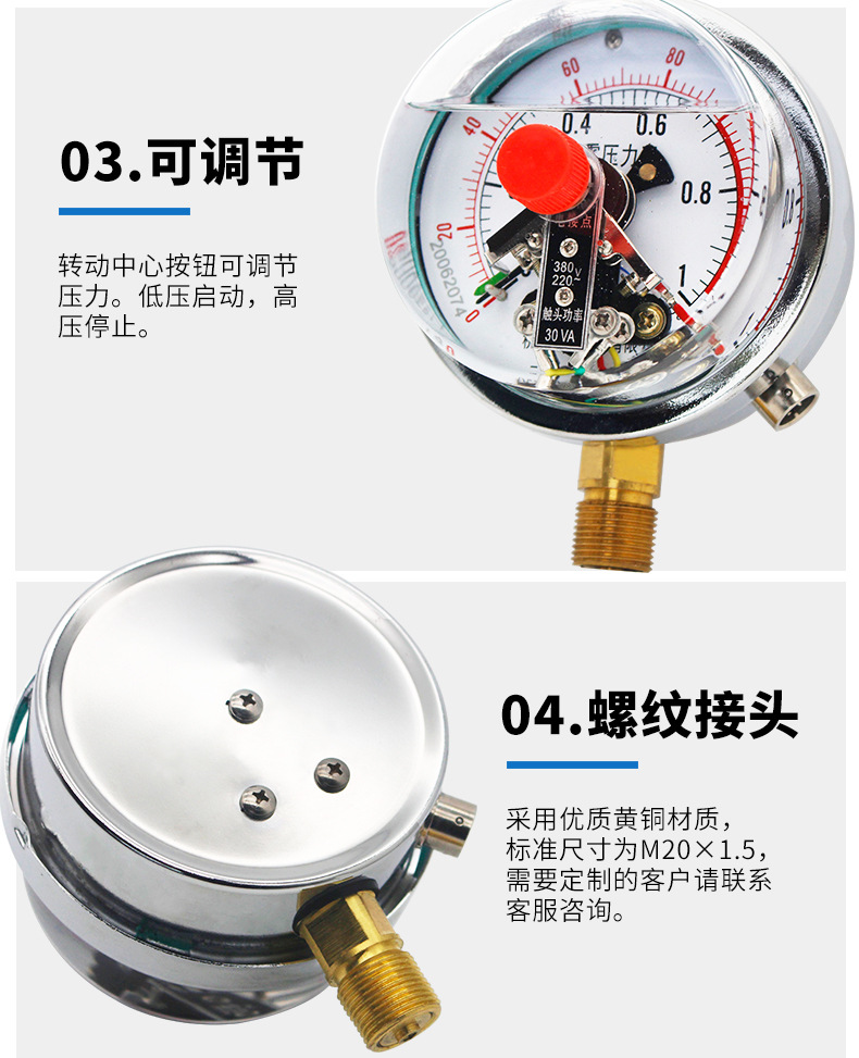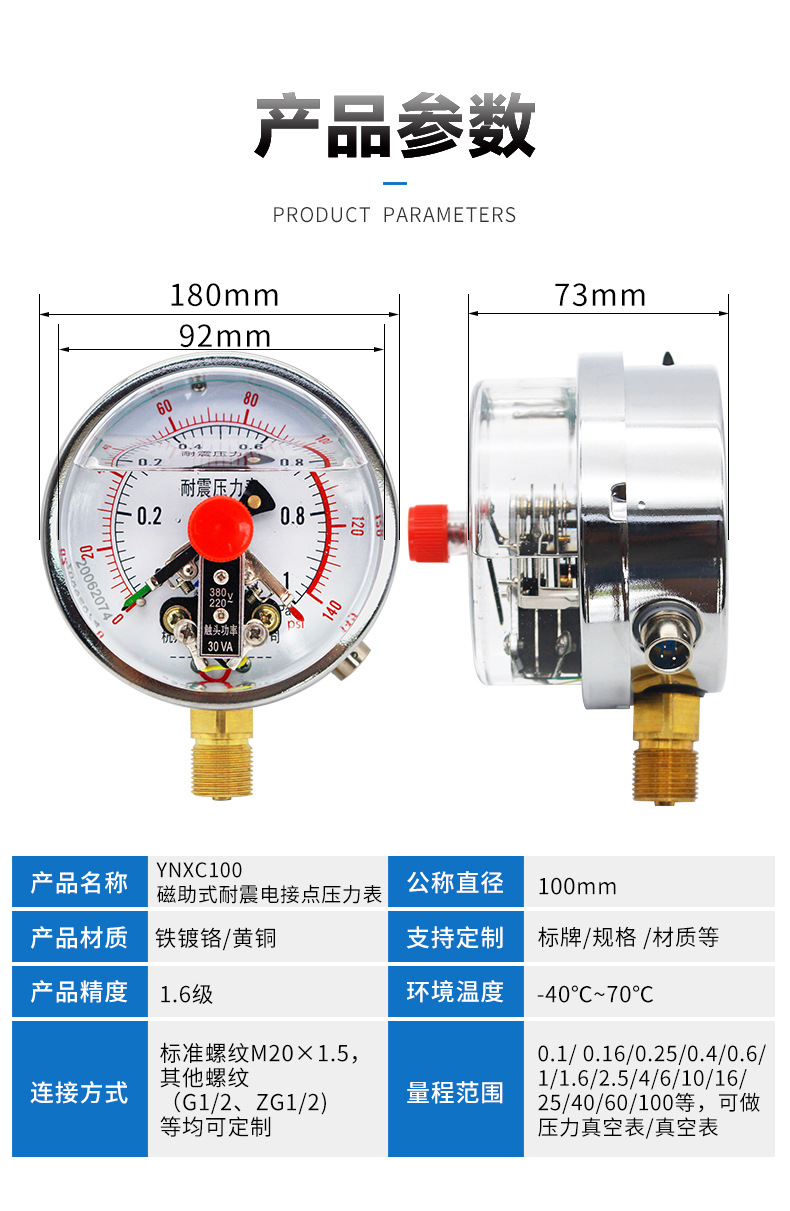 - Wide Compatibility: Yongyi YNXC100 Seismic Electric Contact Pressure Gauge is compatible with water, hydraulic, oil, and gas pressure systems, making it a versatile solution for various industrial and commercial applications.