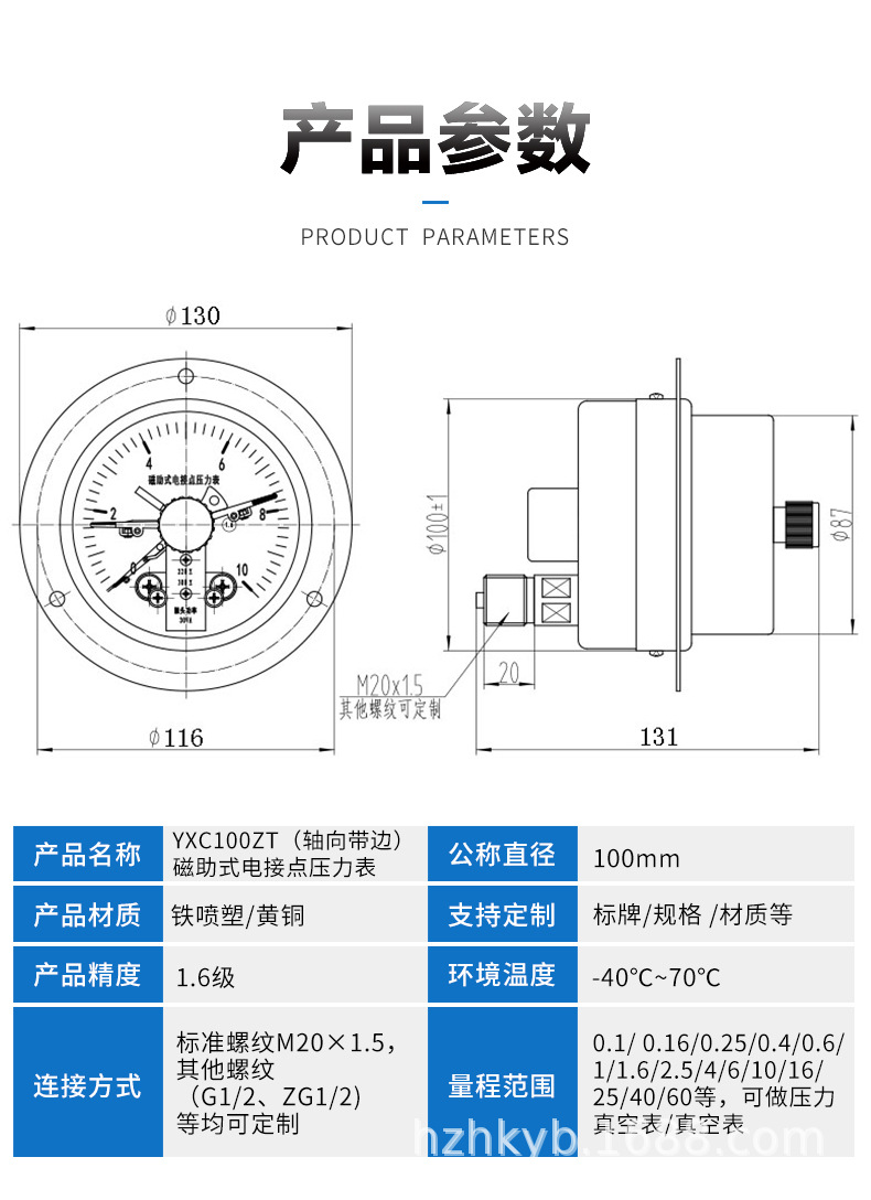 - Key Specs & Performance: Model YXC100ZT, 100mm nominal diameter, offers precise pressure measurement with a range of 0-1.6MPa and 1.6 accuracy class for reliable readings.