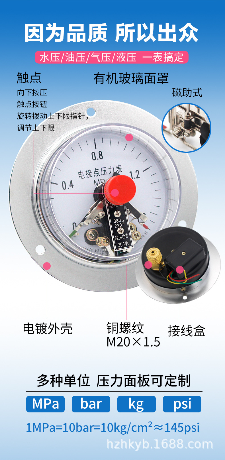 Yongyi YXC100ZT Axial Electrical Contact Pressure Gauge (0-1.6MPa) for Water, Liquid, Oil, Gas Pressure Systems
