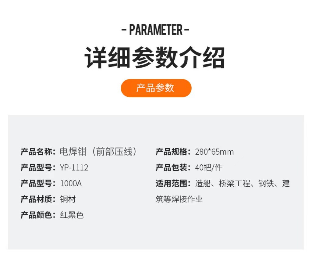 - Ergonomic & Robust Construction: Measuring 280*65mm with a net weight of 0.59kg, designed for comfortable grip and enhanced clamping force for secure electrode holding.