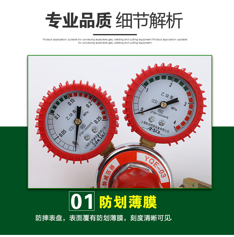 Yuepai Acetylene Pressure Reducer YQE-03 Shockproof Acetylene Gas Pressure Gauge Regulator Valve for Industrial Welding Cutting