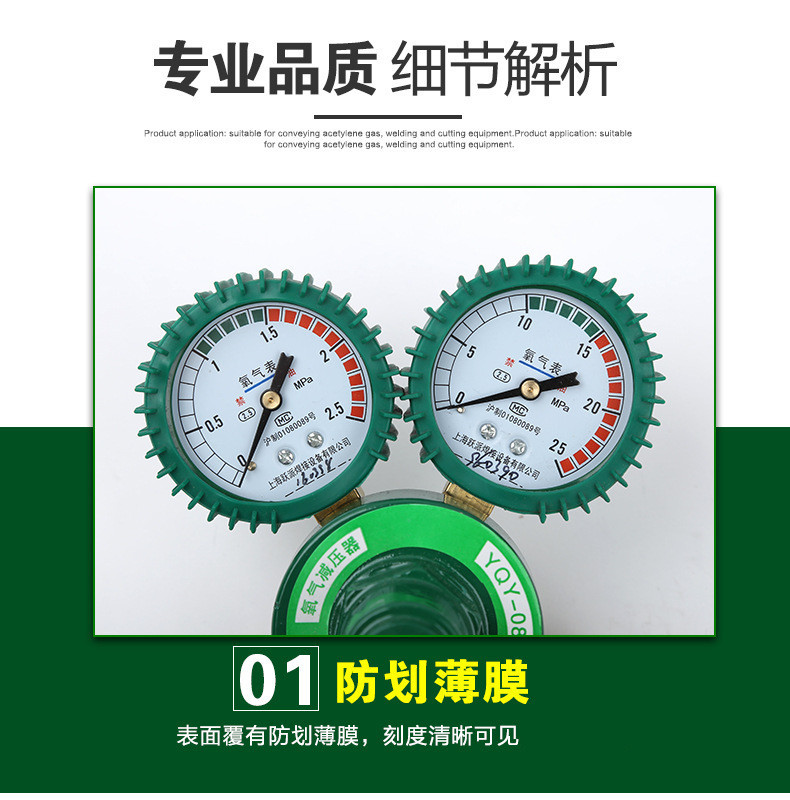 Yuepai All-Copper Dual-Stage Oxygen Pressure Reducer Regulator Gauge for Welding Cutting