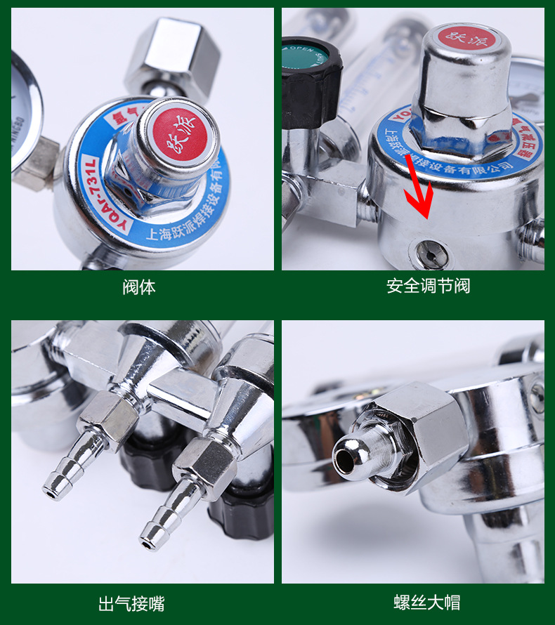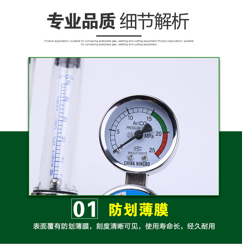 Yuepai Dual-Tube Argon Regulator Pressure Gauge for Welding, 0-25MPa Range, Energy Saving Design
