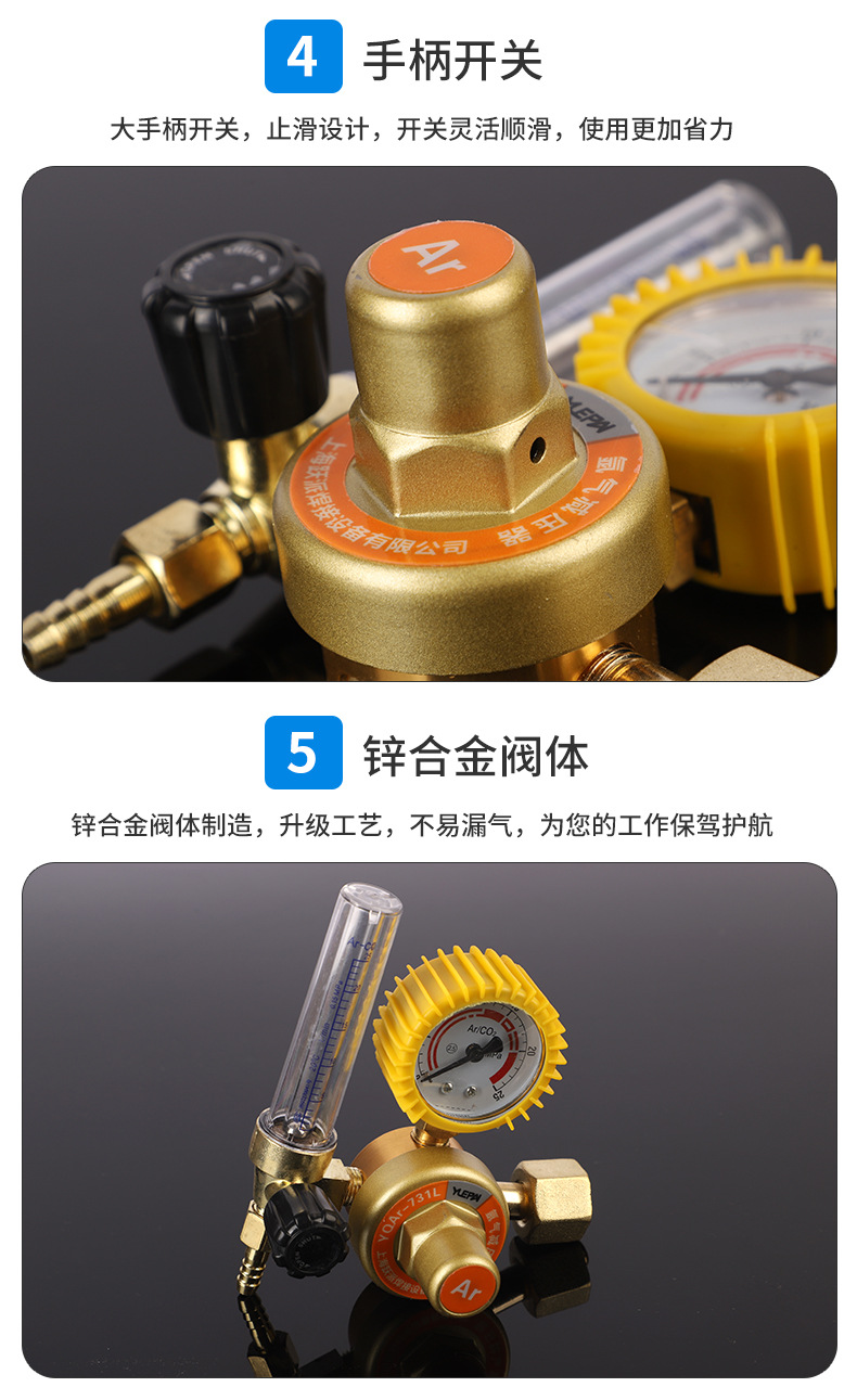 - Precision Argon Regulation: The Yuepai YQAr-731L single-tube pressure reducer ensures accurate and stable pressure for argon gas, perfect for various welding and cutting applications.