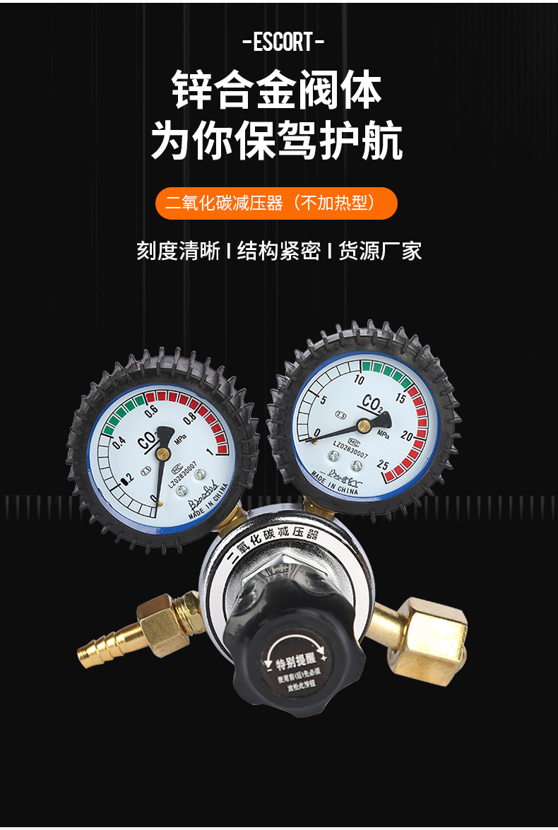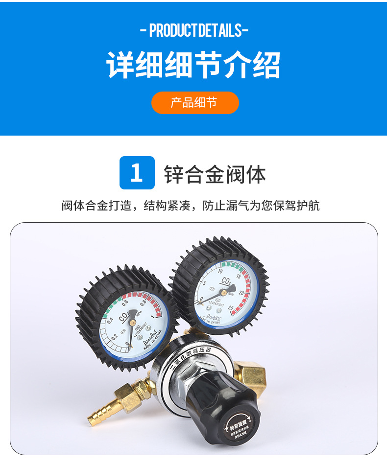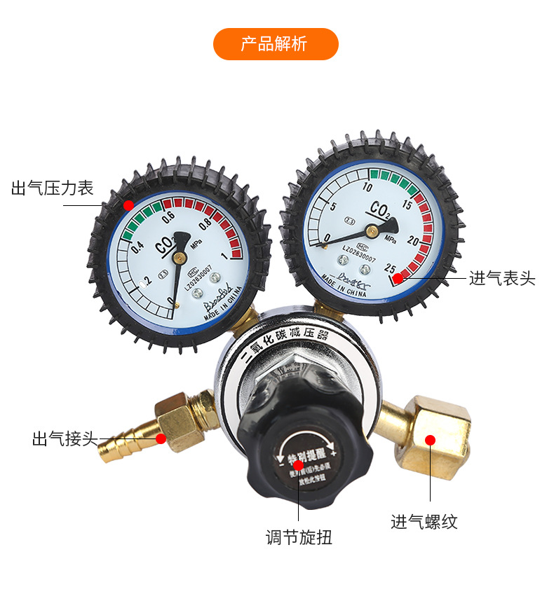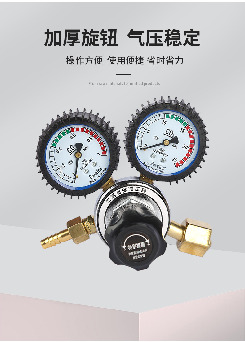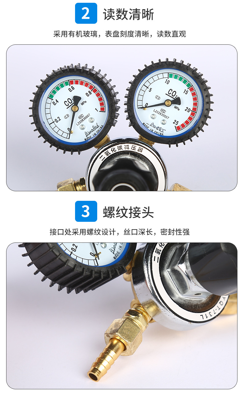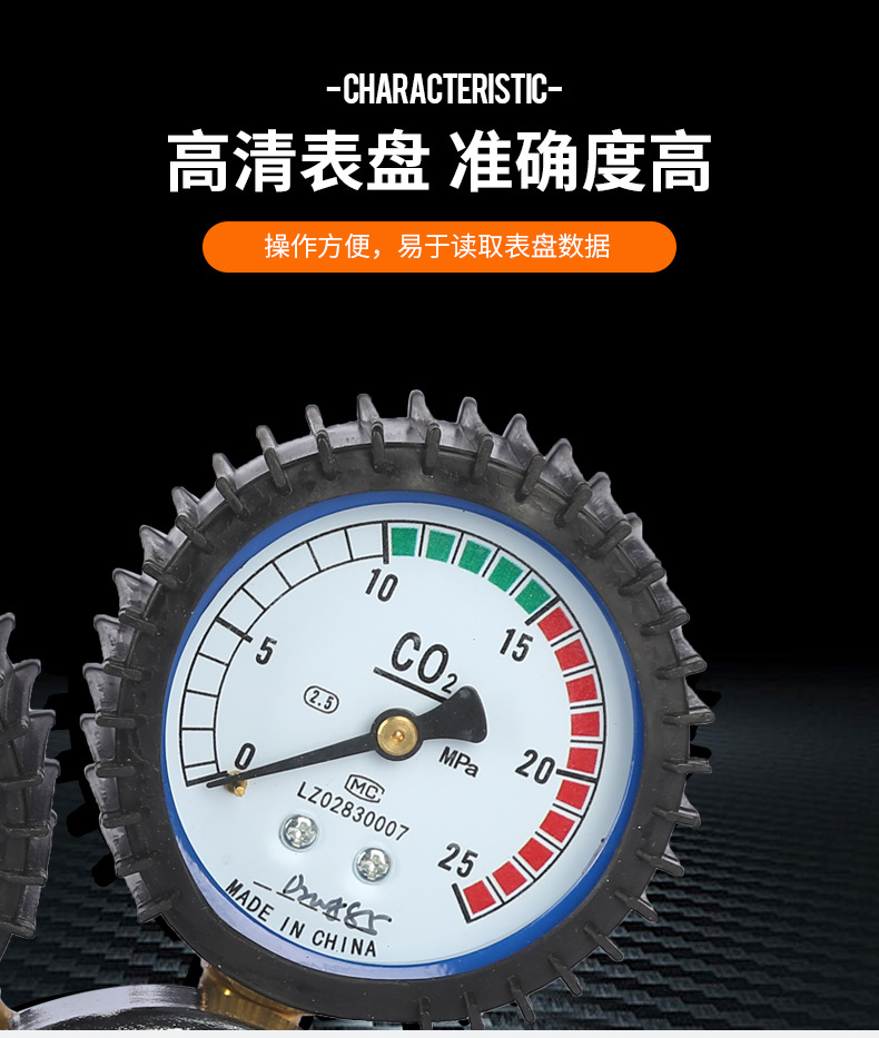 - High-Precision Measurement: Features dual gauges with a 0-25 MPa measuring range for accurate CO2 gas pressure monitoring.
