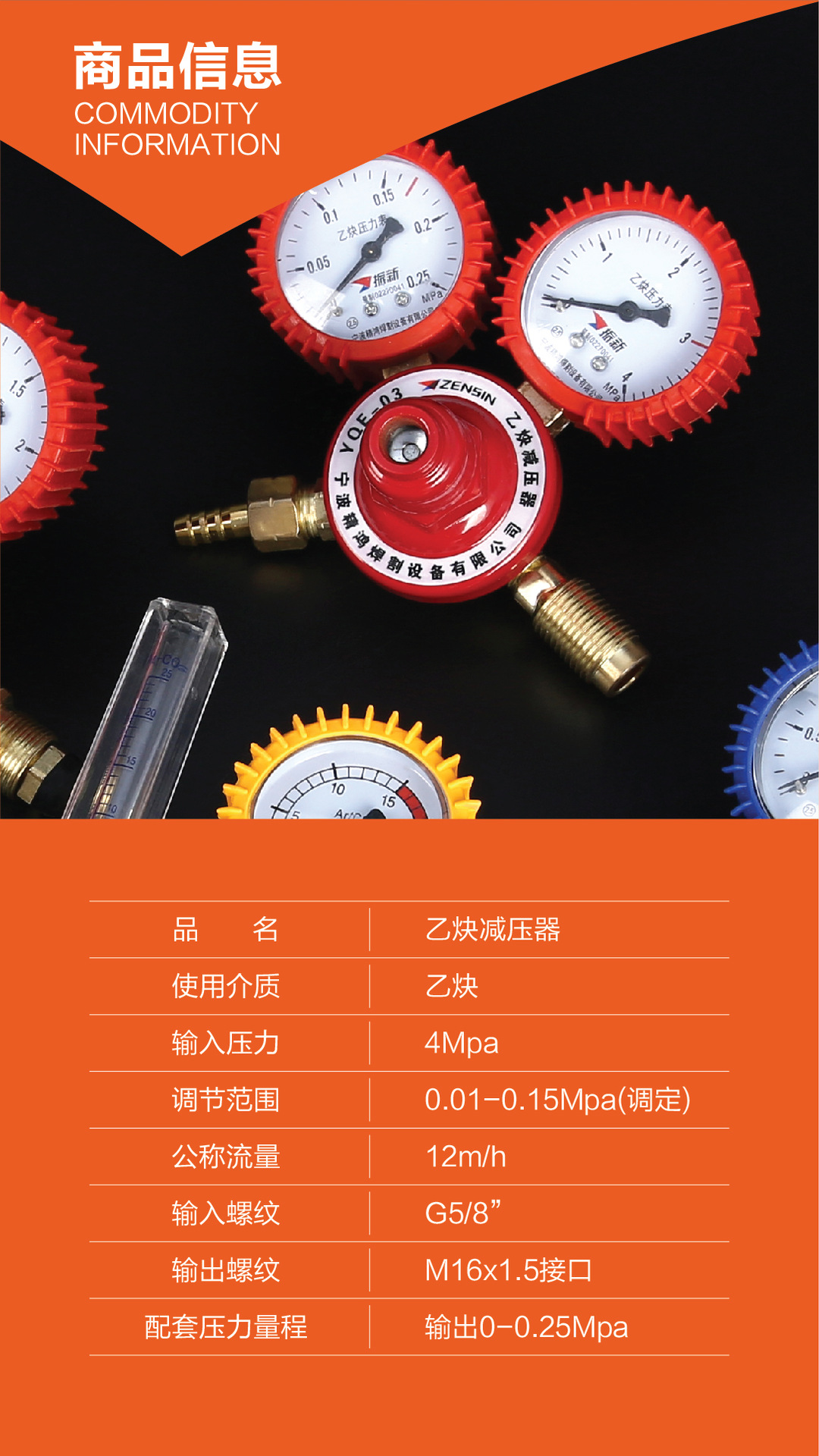 - What You Get: One ZENSIN YQE-03 Acetylene Pressure Reducer with clear gauges, offering a reliable and durable solution for your gas regulation needs.