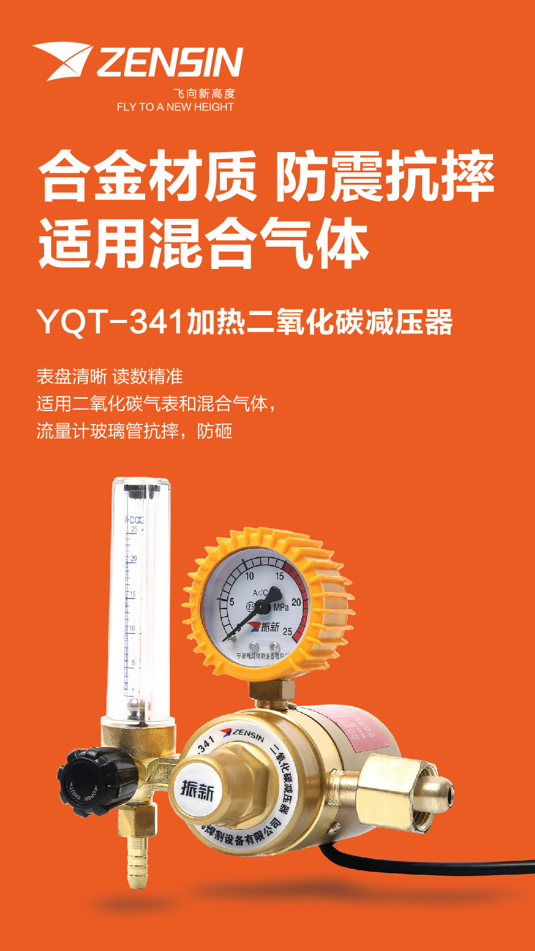 - What You Get: One ZENSIN YQT-341 Carbon Dioxide Regulator with heating table for reliable pressure reduction; ensures safe and efficient operation for your welding projects with clear pressure and flow readings.
