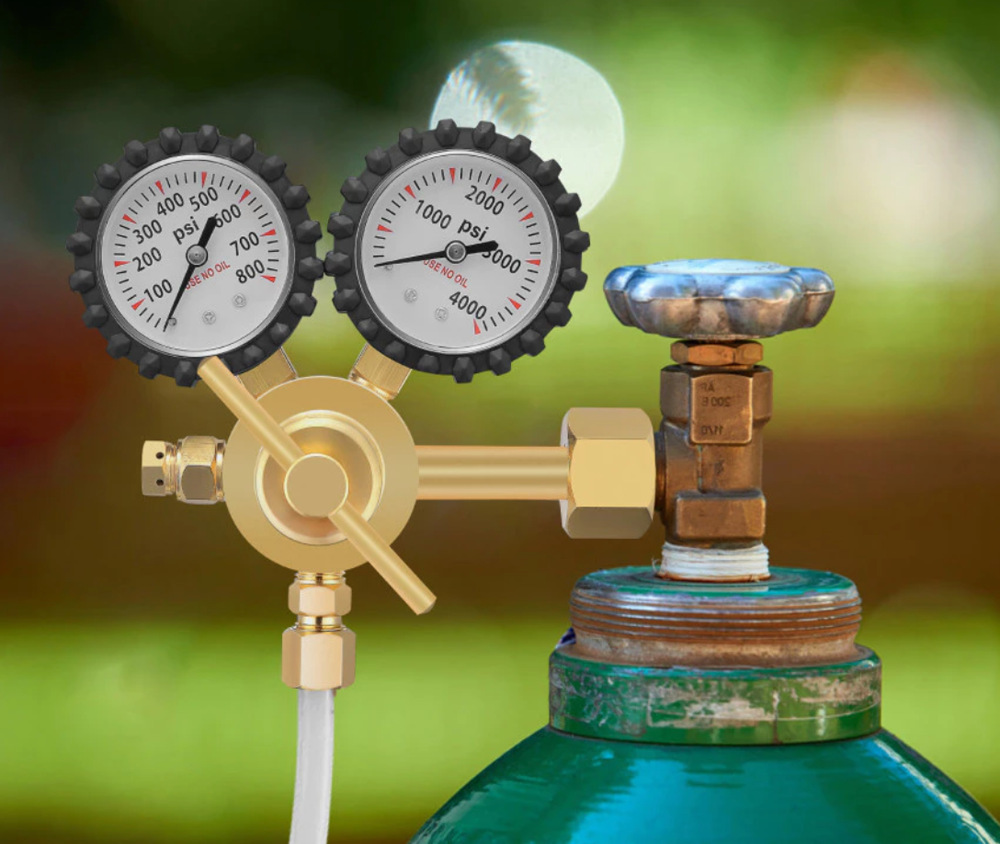 - Principais especificações e desempenho: Equipped with two easy-to-read gauges: a 0-800 PSI output pressure gauge for precise regulation and a 0-4000 PSI inlet pressure gauge to monitor tank levels, ensuring accurate and reliable operation.