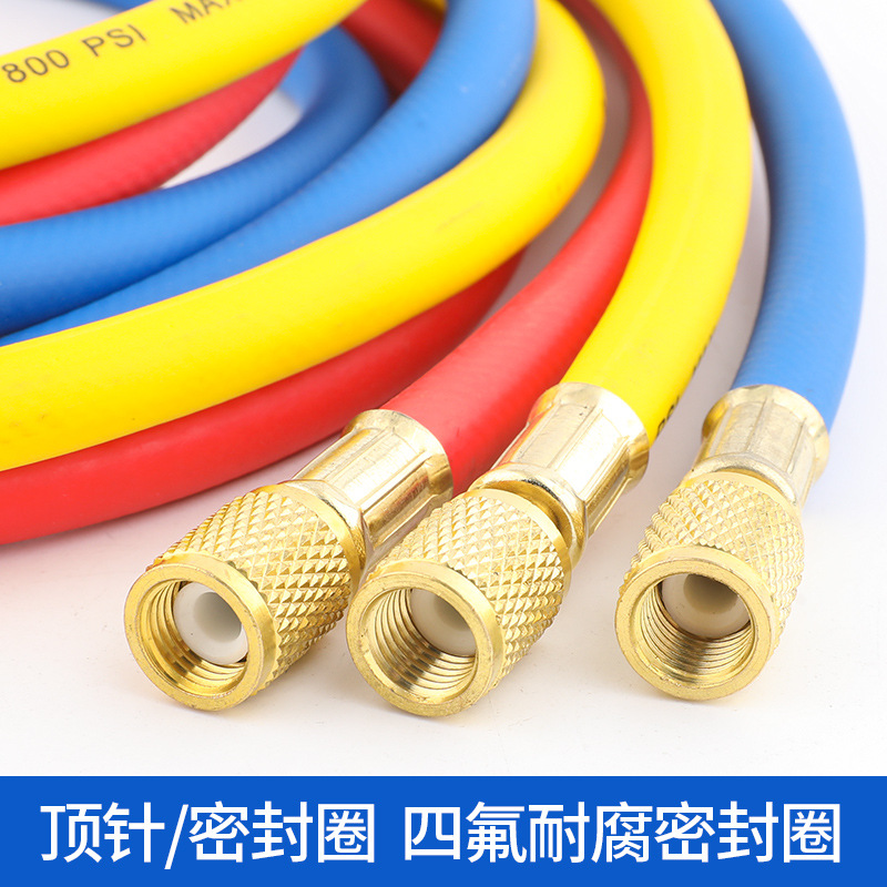 - O que você ganha: Three colorful (red, yellow, blue) refrigerant charging hoses with integrated ball valves, providing a complete solution for AC maintenance and repairs.