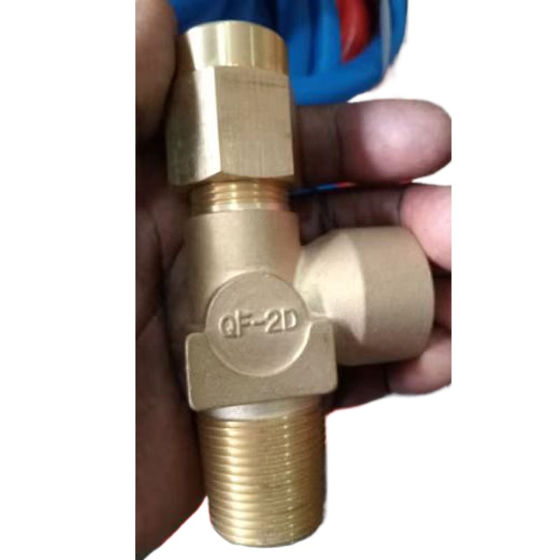 Brass Cylinder Gas Valve QF-2C1 (QF-6A, QF-7B Compatible) with Blue Handwheel for Oxygen Cylinders
