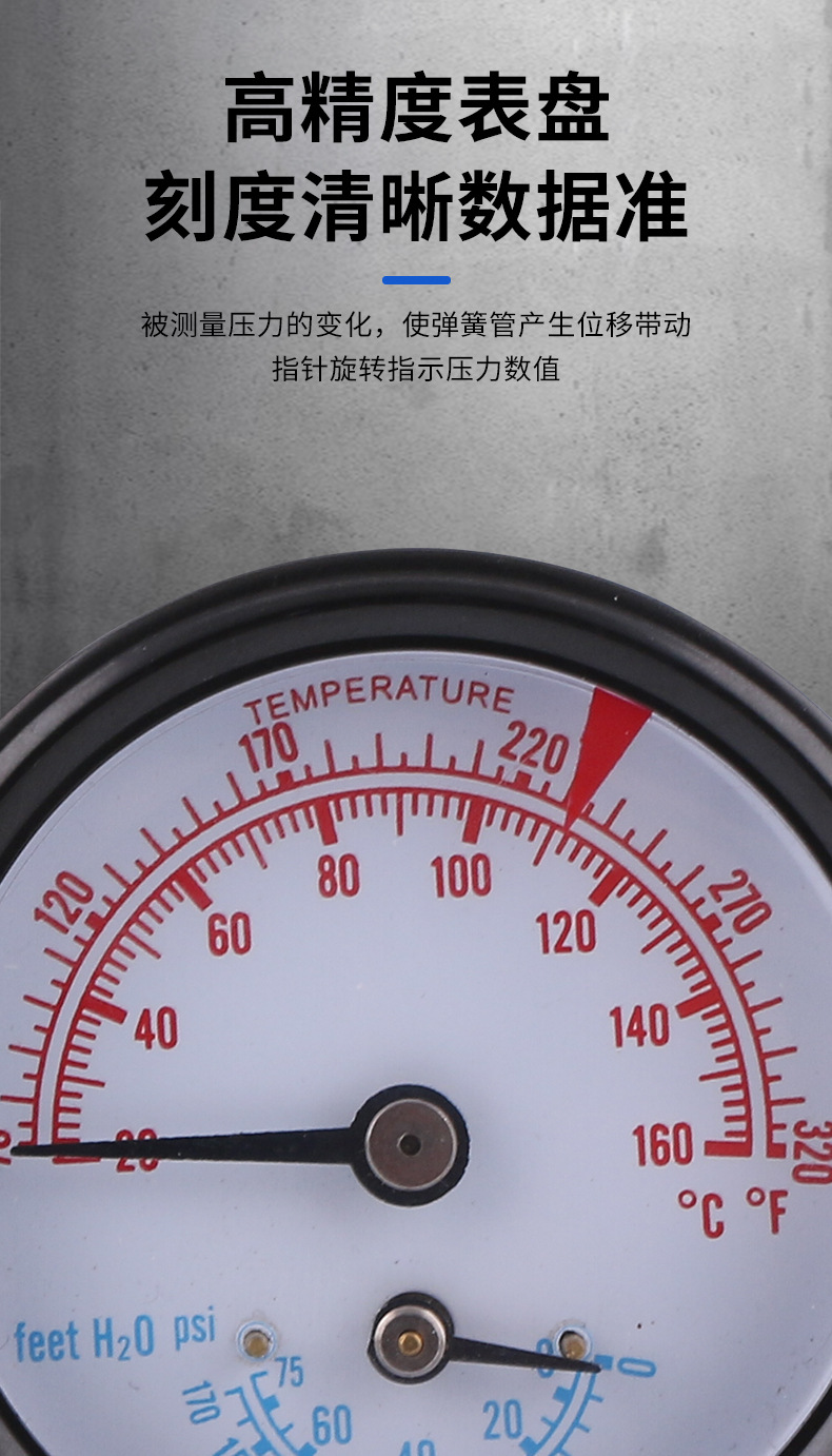 - Широкая совместимость: Designed for HVAC systems, this 50mm axial temperature pressure gauge is suitable for measuring temperature and pressure in various applications.