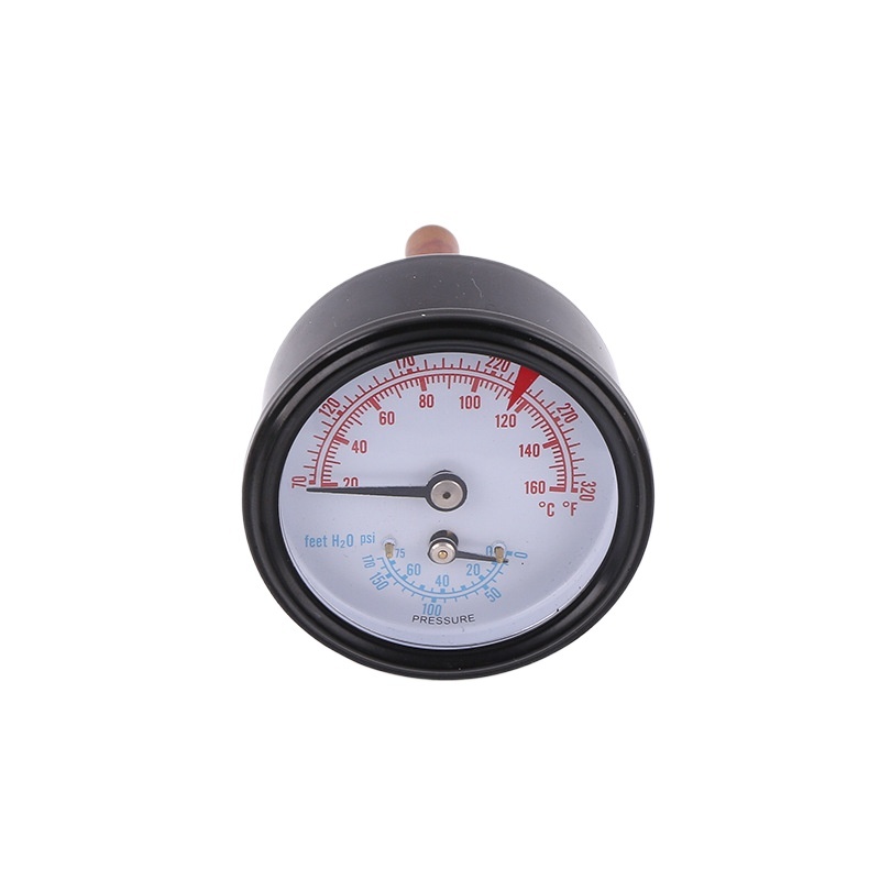 Axial Temperature Pressure Gauge 50mm Black Iron Shell Copper Probe for HVAC Systems
