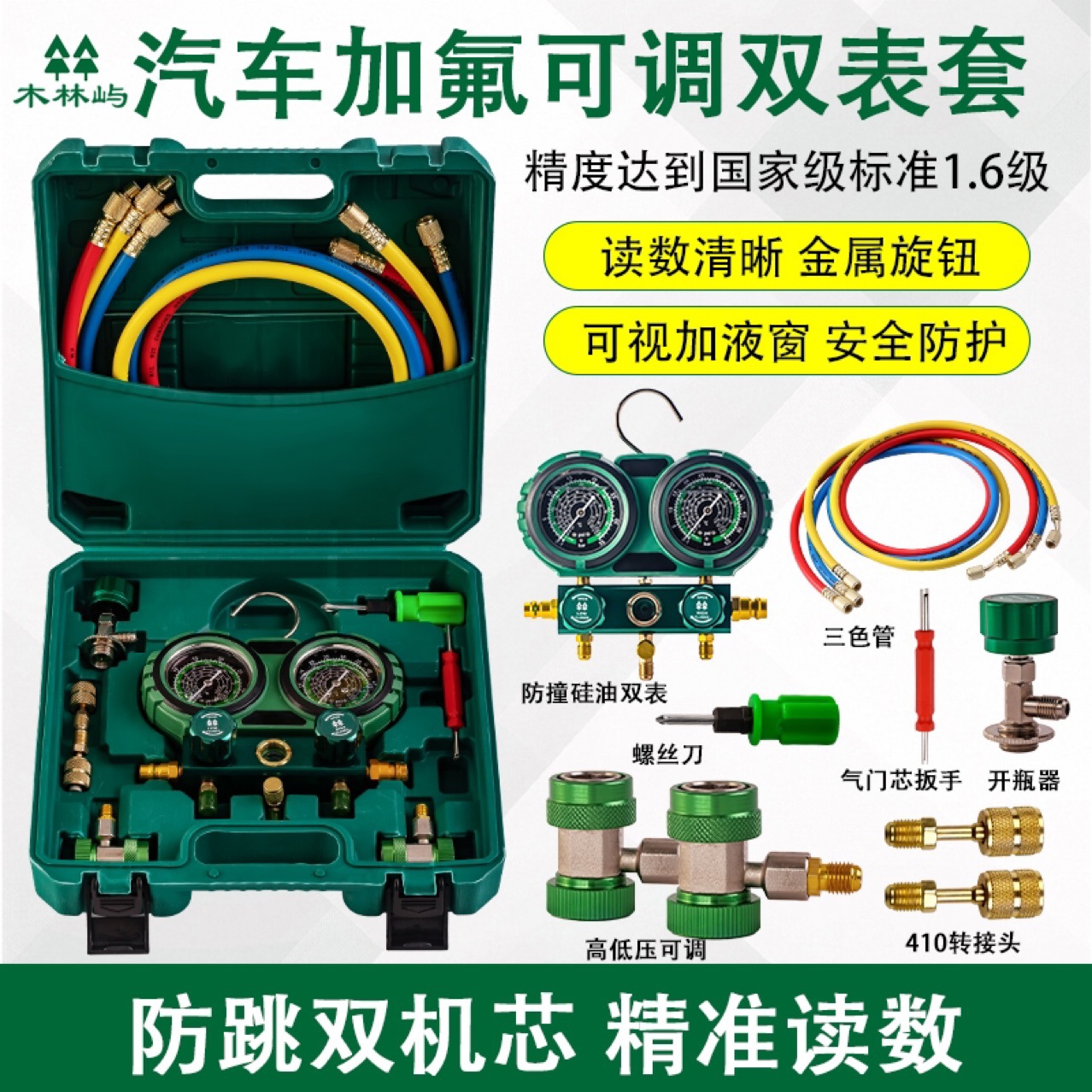 Комплект манометров для автомобильного хладагента (R134A, R22, R410A) с двумя манометрами, шлангами и адаптерами