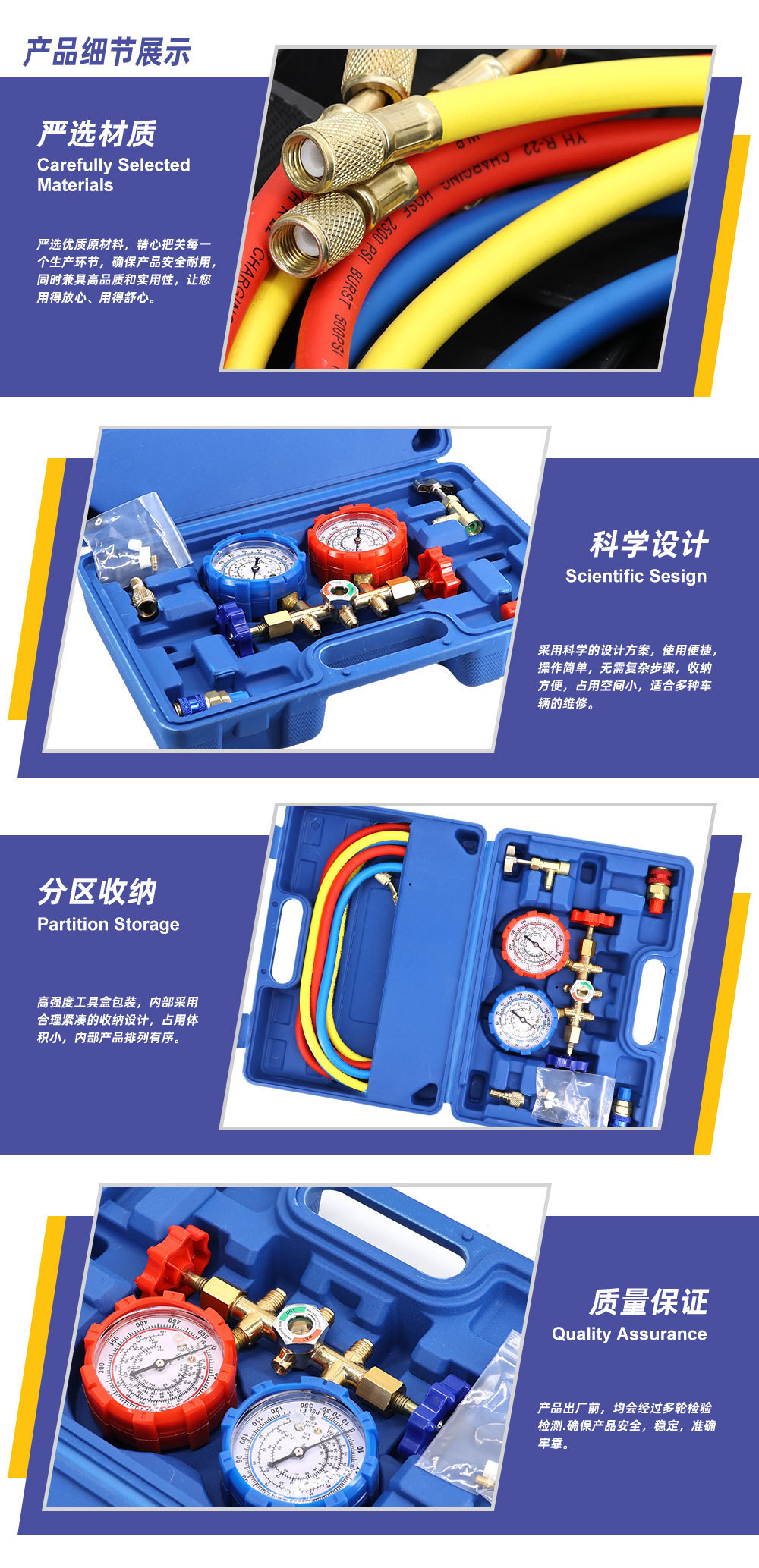 Professional R134a AC Manifold Gauge Set (Dual Gauge, Pressure Testing) for Automotive Car Air Conditioning Refrigerant Charging
