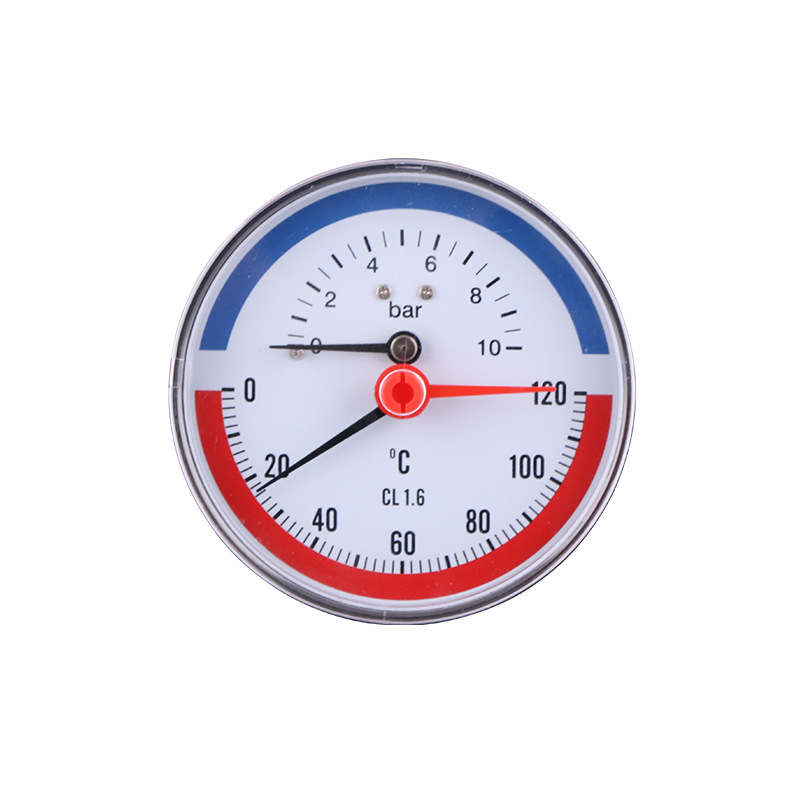 Auxiliary Gauge 80mm Axial Snap-in Iron Case Temperature Pressure Gauge (0-10bar, 0-120°C, CL 1.6)