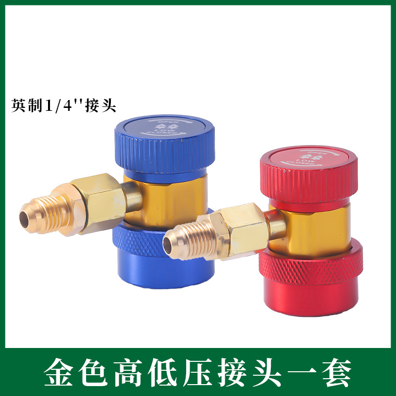 อะแดปเตอร์ข้อต่อด่วนสารทำความเย็น R134a AC แบบปรับได้แรงดันสูง/ต่ำสำหรับระบบปรับอากาศในรถยนต์