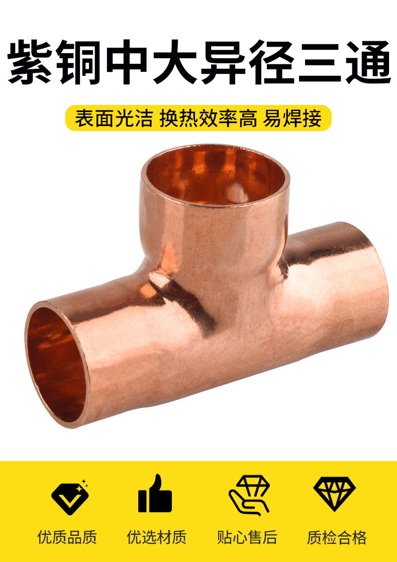 - สิ่งที่คุณได้รับ: One high-quality copper reducing tee joint, providing a reliable solution for your refrigeration and plumbing needs with strict quality control. Made in Zhejiang, Zhuji.